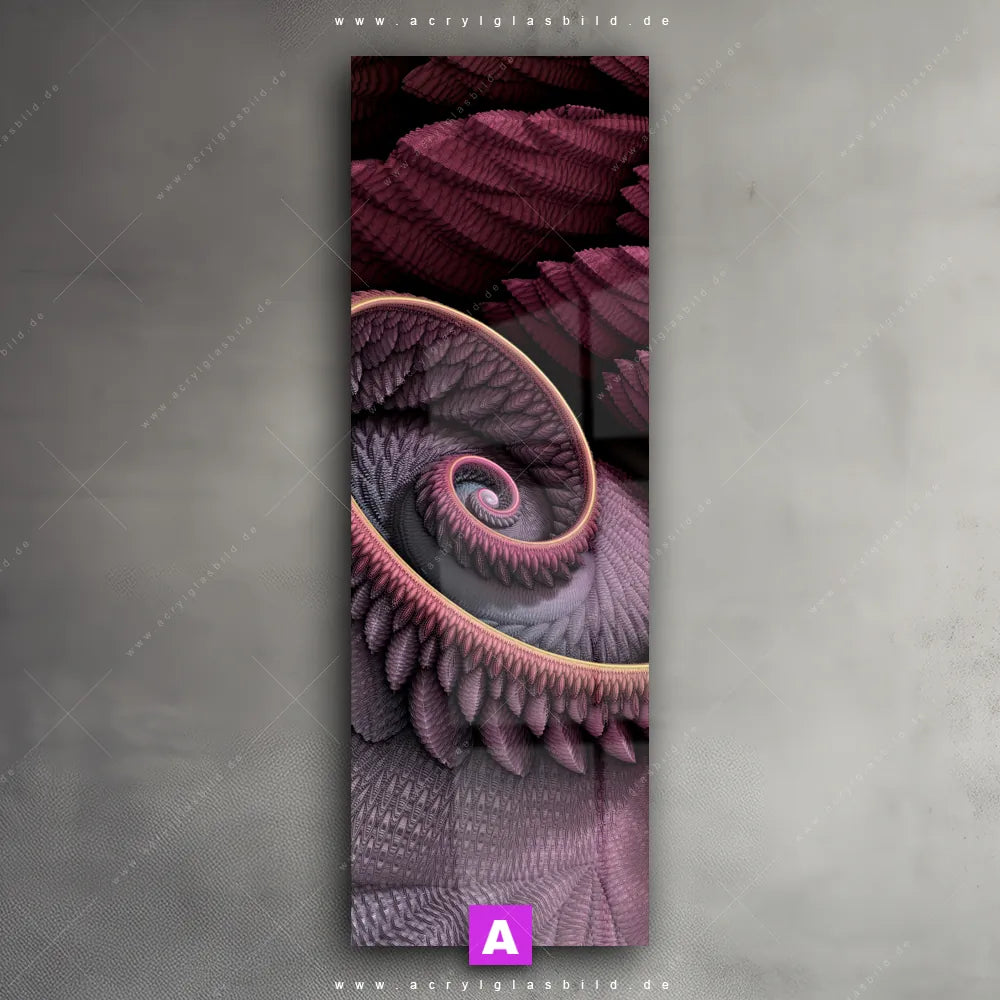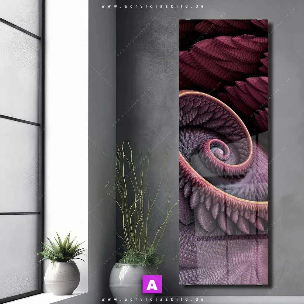 <b>Produktart:</b> Acrylglasbild | Glasbild | Wandbild aus Kunstglas | <b> Motiv:</b> Blüten Spirale | <b> Bildausrichtung:</b> Schmal | <b> Max. Motiv-Größe:</b> 180cm breit | 360cm hoch | <b> Verfügbare Formate: </b> Quadrat, Querformat, Hochformat, Panorama, Schmal, Rund | <b> Kategorie:</b>  Blumen - Botanik, Muster - Texturen | <b> Farben:</b>  Schwarz, Rot, Lila | <b> Kunstformen:</b>  Digitale Kunst | <b> Kunststile:</b>  Abstrakt, Modern Art, Floral