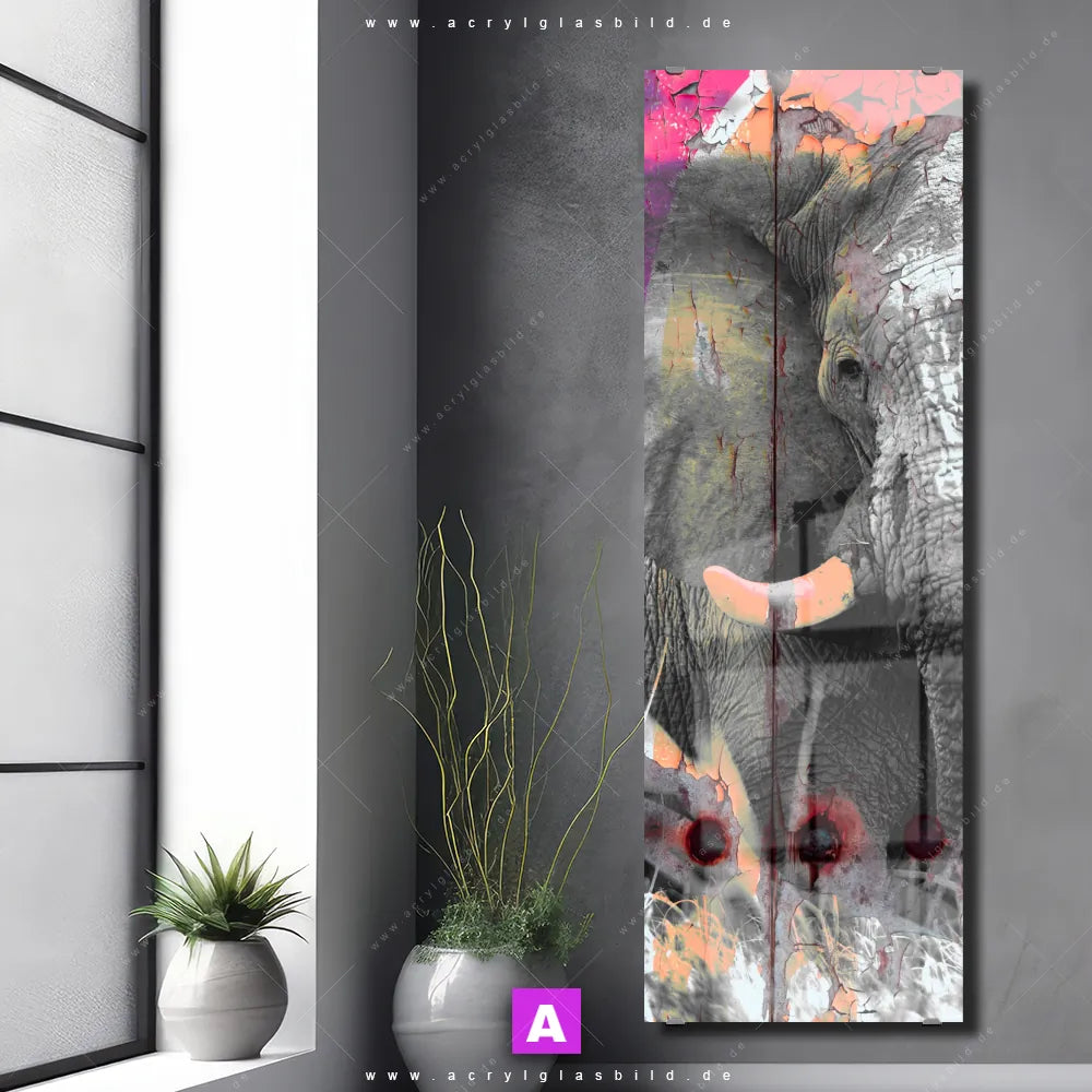 Langweilige Wände sind wie ein trockenes Toastbrot ohne Butter und Marmelade - einfach fade und nicht sehr appetitlich. Aber zum Glück haben wir das perfekte Acrylglasbild für dich: Mit unserem Kunstwerk Grunge Elefant im Format Schmal wird deine Wand zur Leinwand und dein Raum zum Blickfang.