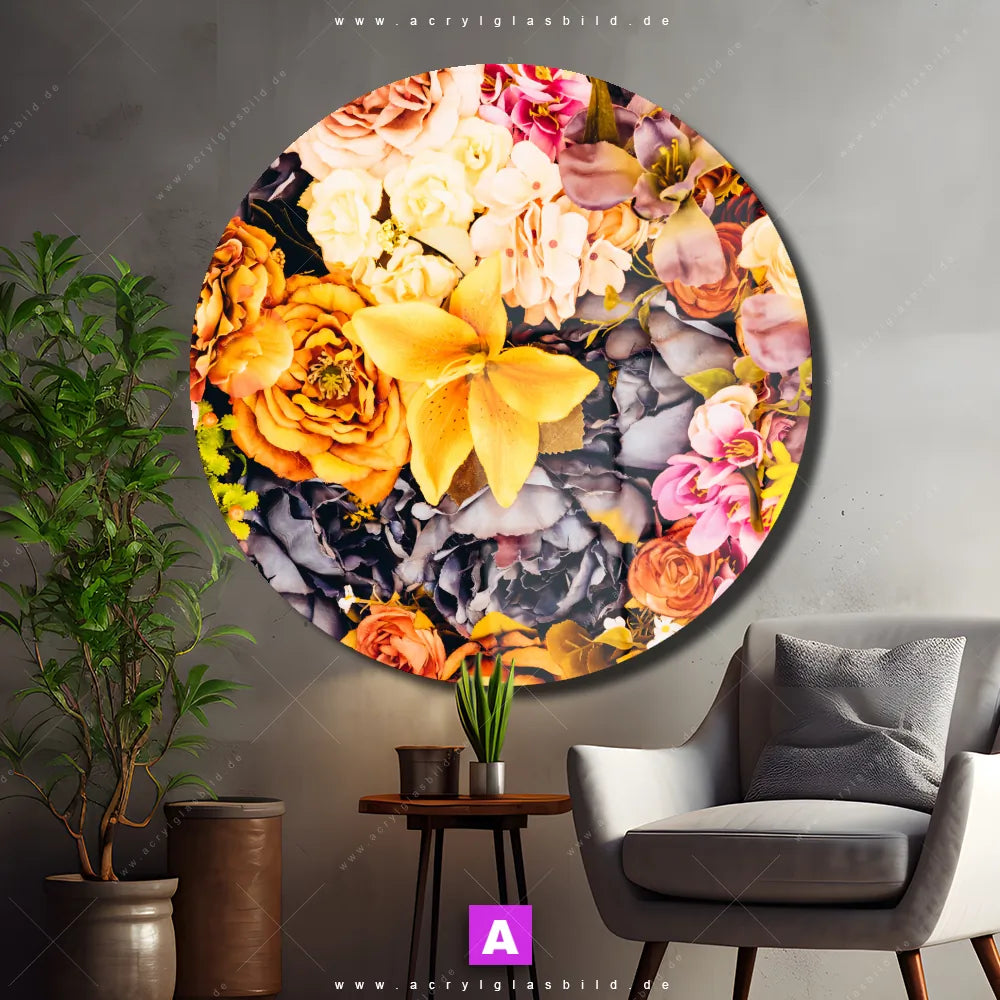 Hey du! Bist du es auch leid, auf langweilige, weiße Wände in deinem Raum zu starren und dich zu fragen, ob das der Sinn des Lebens ist? Unser Acrylglasbild mit dem Titel Blütenzauber im Format Rund verwandelt deine Wand in ein Kunstwerk und macht deinen Raum zum absoluten Hingucker.
