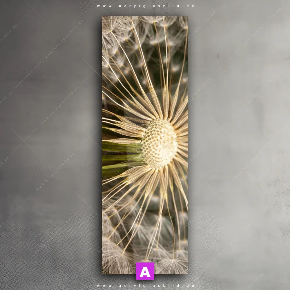 <b>Produktart:</b> Acrylglasbild | Glasbild | Wandbild aus Kunstglas | <b> Motiv:</b> Pusteblume No. 11 | <b> Bildausrichtung:</b> Schmal | <b> Max. Motiv-Größe:</b> 300cm breit | 450cm hoch | <b> Verfügbare Formate: </b> Quadrat, Querformat, Hochformat, Panorama, Schmal, Rund | <b> Kategorie:</b> Blumen - Botanik | <b> Farben:</b> Schwarz, Hellgrün, Braun, Weiss, Ocker | <b> Kunstformen:</b> Fotografie | <b> Kunststile:</b> Floral, Natürlich - Realistisch
