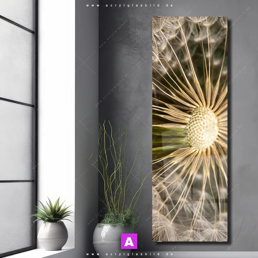 Vergiss also langweilige weiße Wände und entscheide dich für das Acrylglasbild Flugsamen an Löwenzahnblüte, gestaltet als Fotografie, das deinem Raum Charakter verleiht und dich jeden Tag aufs Neue inspiriert. Mit diesem Blumen - Botanik Acrylglasbild wird deine Wand zur Kunst und du zum Kunstliebhaber.