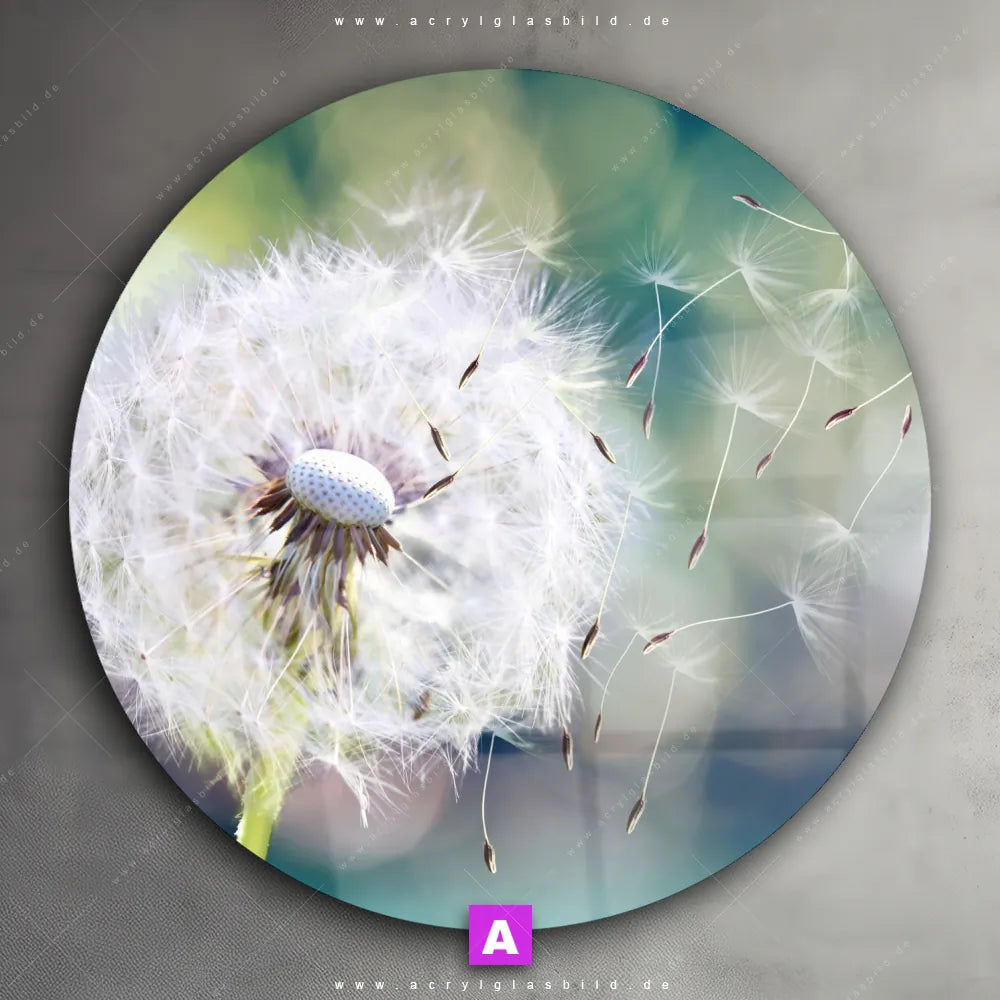 <b>Produktart:</b> Acrylglasbild | Glasbild | Wandbild aus Kunstglas | <b> Motiv:</b> Pusteblume No. 3 | <b> Bildausrichtung:</b> Rund | <b> Max. Motiv-Größe:</b> 450cm breit | 300cm hoch | <b> Verfügbare Formate: </b> Quadrat, Querformat, Hochformat, Panorama, Schmal, Rund | <b> Kategorie:</b> Blumen - Botanik | <b> Farben:</b> Türkis, Weiss, Mint, Grün | <b> Kunstformen:</b> Fotografie | <b> Kunststile:</b> Floral, Retro - Vintage
