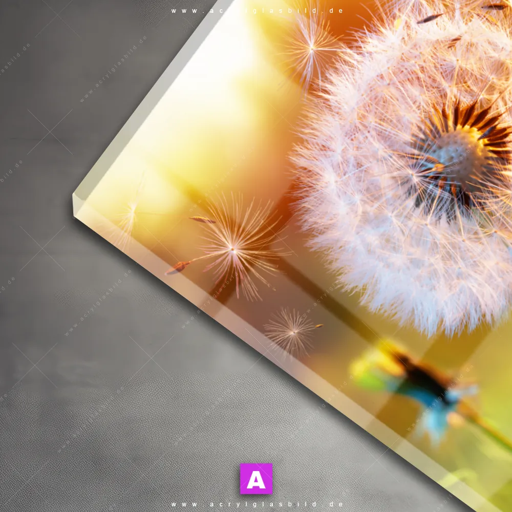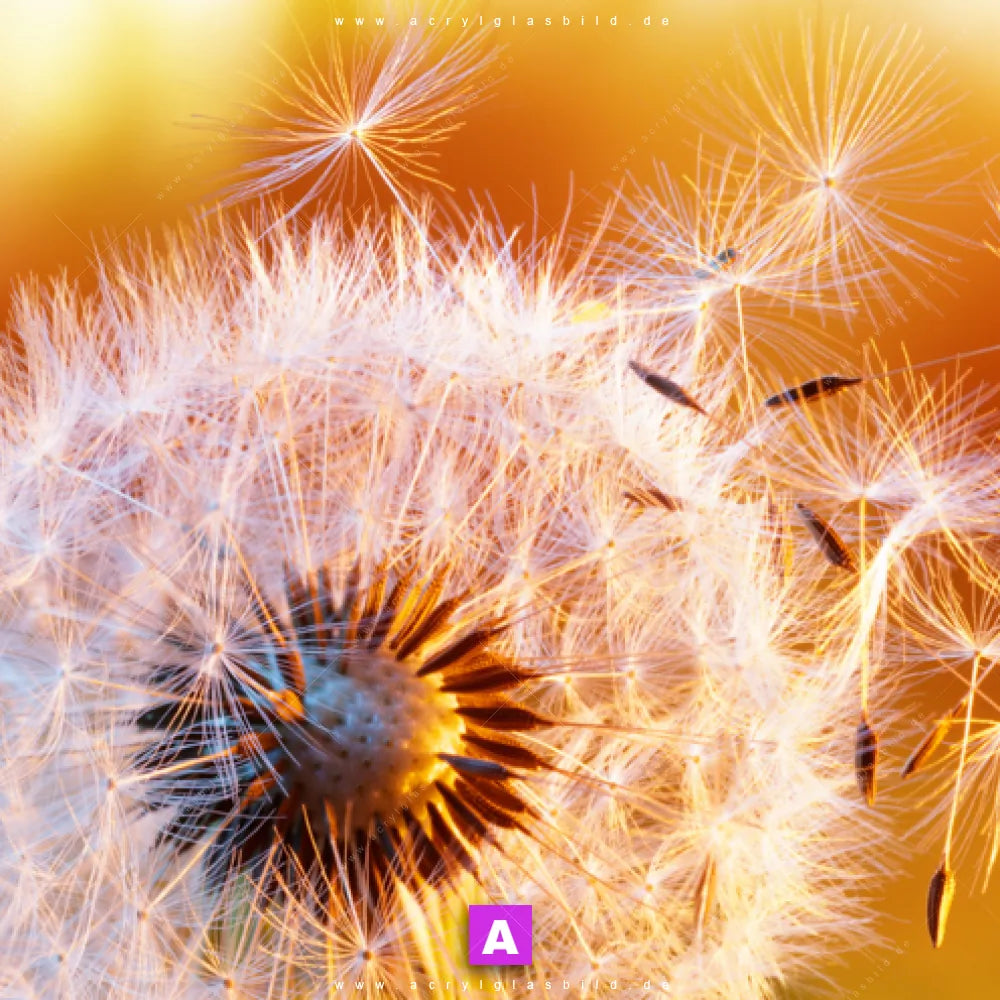 <b>Produktart:</b> Acrylglasbild | Glasbild | Wandbild aus Kunstglas | <b> Motiv:</b> Pusteblume No. 8 | <b> Bildausrichtung:</b> Rund | <b> Max. Motiv-Größe:</b> 500cm breit | 240cm hoch | <b> Verfügbare Formate: </b> Quadrat, Querformat, Hochformat, Panorama, Schmal, Rund | <b> Kategorie:</b> Blumen - Botanik | <b> Farben:</b> Orange, Hellgrün | <b> Kunstformen:</b> Fotografie | <b> Kunststile:</b> Floral, Natürlich - Realistisch