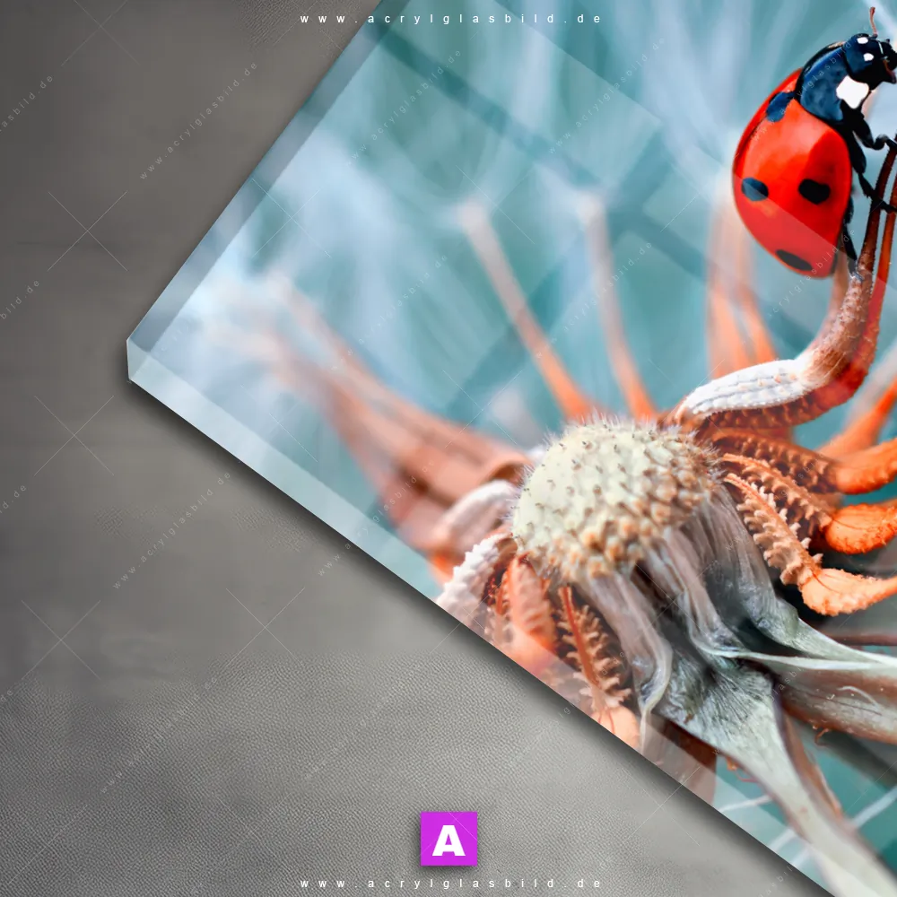 Also, worauf wartest du noch? Verleihe deinen Wänden das gewisse Etwas und bestelle jetzt das Acrylglasbild Marienkäfer sitzt auf Pusteblume!