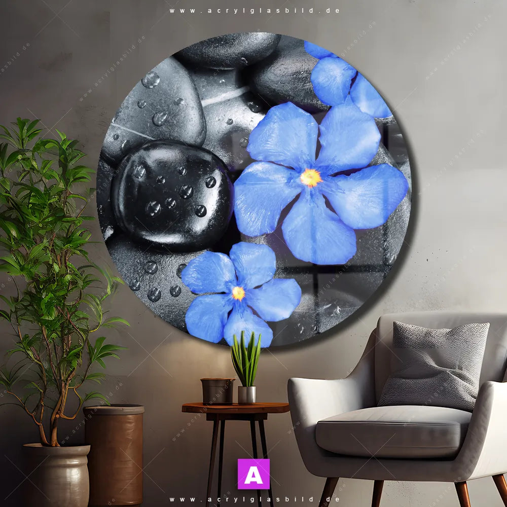 Acrylglasbild | Blaue Blume & Graue Steine | Rund