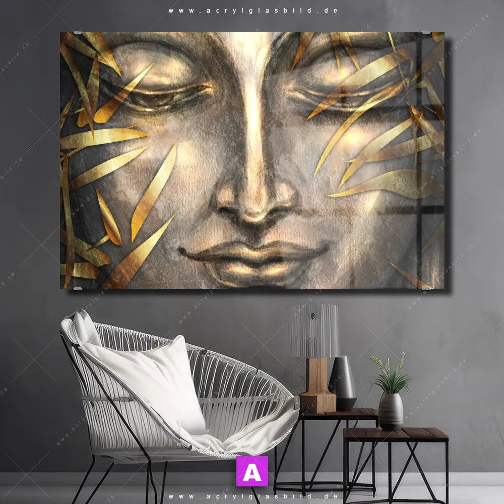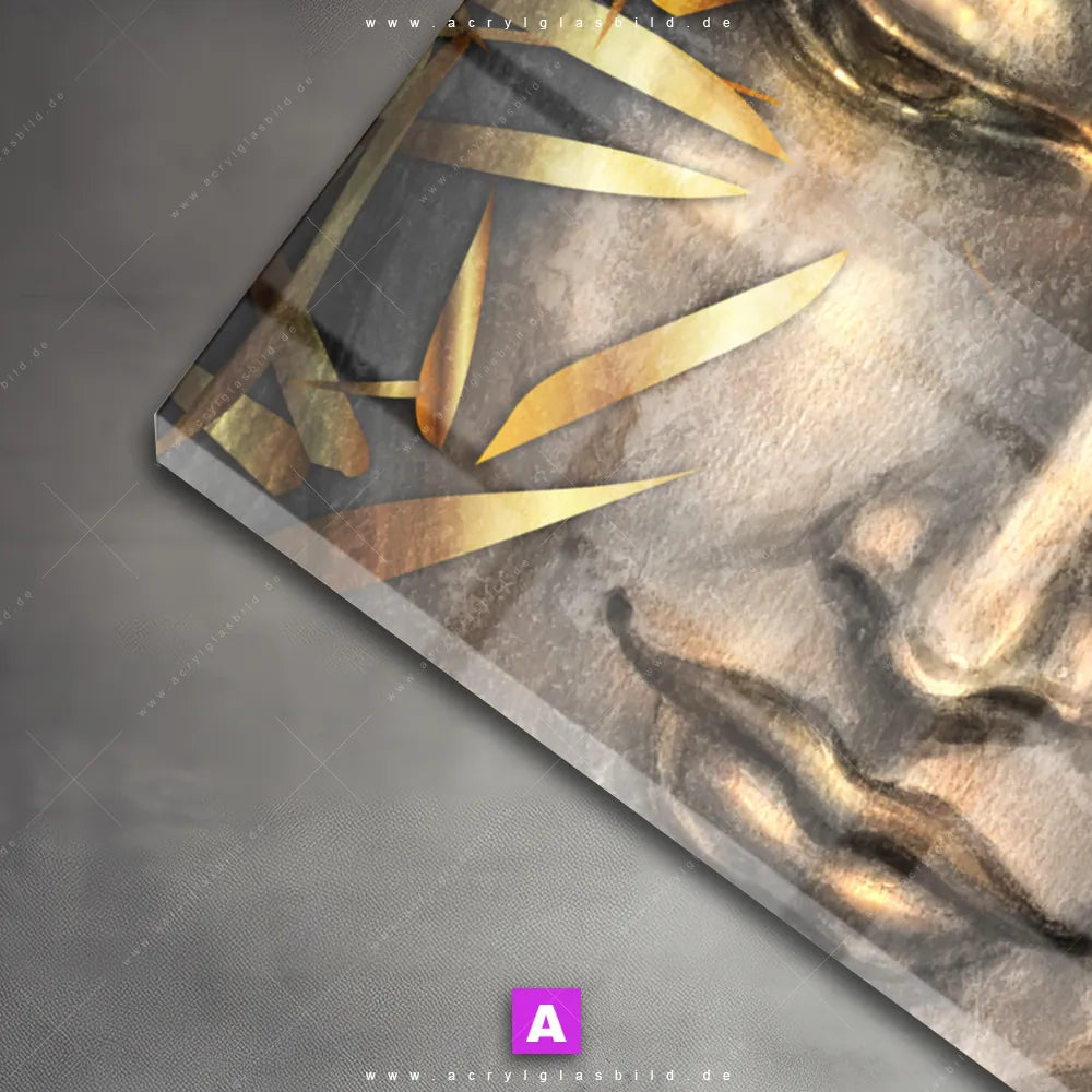 <b>Produktart:</b> Acrylglasbild | Glasbild | Wandbild aus Kunstglas | <b> Motiv:</b> Buddha Silber & Gold | <b> Bildausrichtung:</b> Querformat | <b> Max. Motiv-Größe:</b> 180cm breit | 250cm hoch | <b> Verfügbare Formate: </b> Quadrat, Querformat, Hochformat, Panorama, Schmal, Rund | <b> Kategorie:</b> Buddha - Feng Shui | <b> Farben:</b> Gold, Silber | <b> Kunstformen:</b> Digitale Kunst | <b> Kunststile:</b> Modern Art