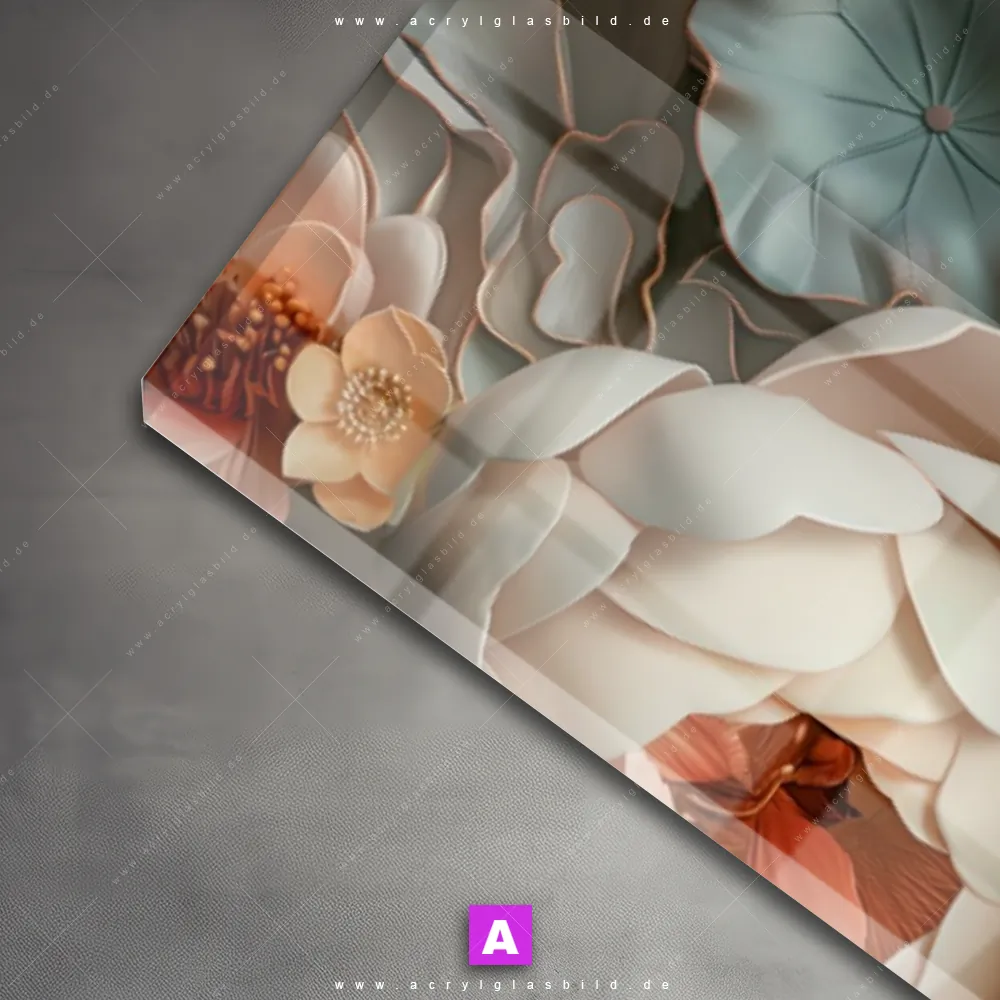 Das Motiv Buddha-Statue mit Blüten wird im UV-Direktdruck in den Farben Beige, Orange, Blau auf die Rückseite einer 5mm starken, transparenten Acrylglasplatte gedruckt. Das durchscheinende Motiv Friedlicher Buddha im Blütenmeer im Floral, Modern Art Stil wird anschließend vollflächig mit einer weißen Schicht hinterlegt. Das Buddha - Feng Shui, Blumen - Botanik Acrylglasbild | Panorama erhält so eine bemerkenswerte Farbbrillanz, hohe Schärfe und erstaunliche Tiefenwirkung.