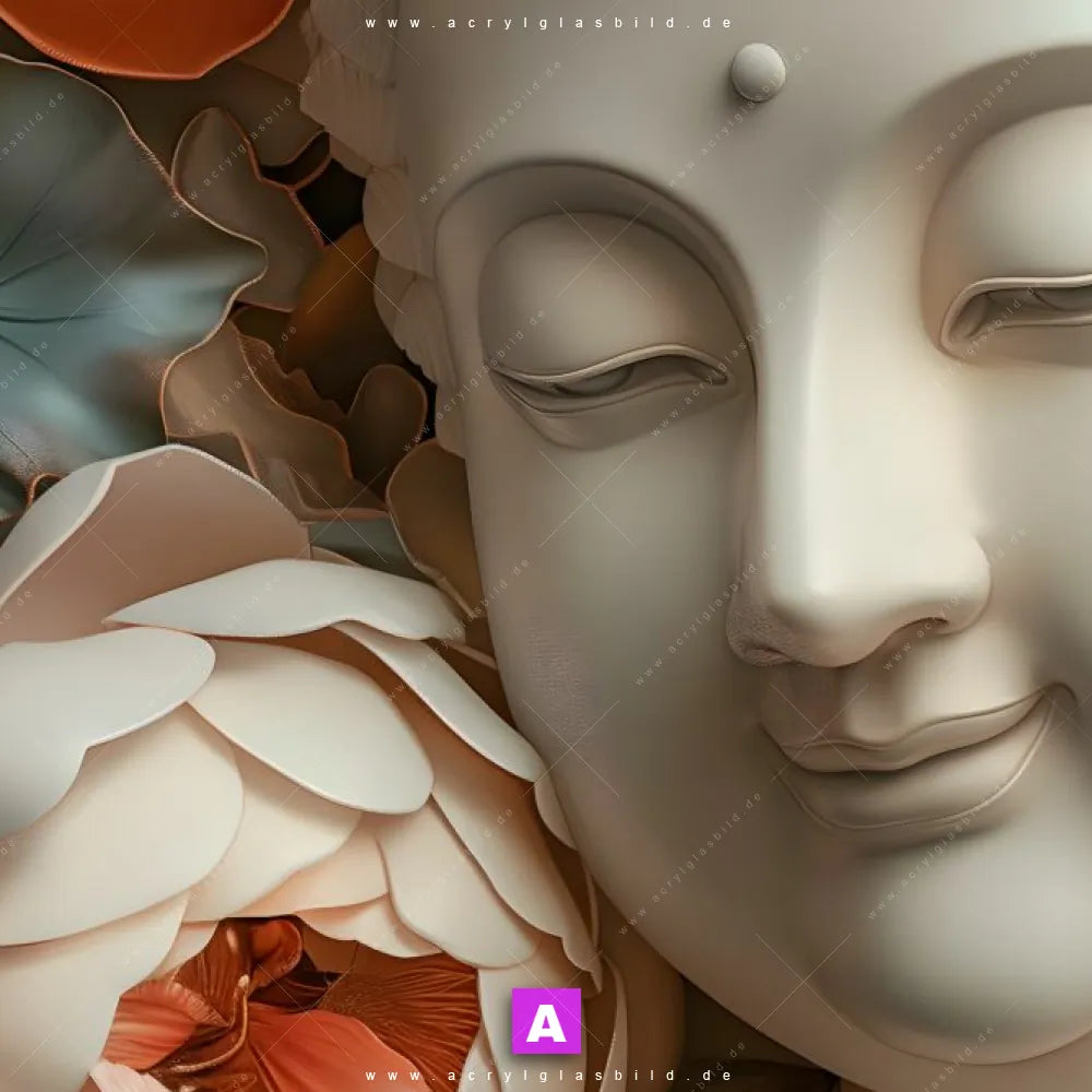 Also, worauf wartest du noch? Verwandle deine tristen Wände in Arzt - Praxis, Wohnzimmer - Schlafzimmer, Flur - Eingangsbereich in inspirierende Kunstwerke aus der Kategorie Buddha - Feng Shui, Blumen - Botanik und bestelle jetzt das Acrylglasbild Spirituelles Buddha Porträt!