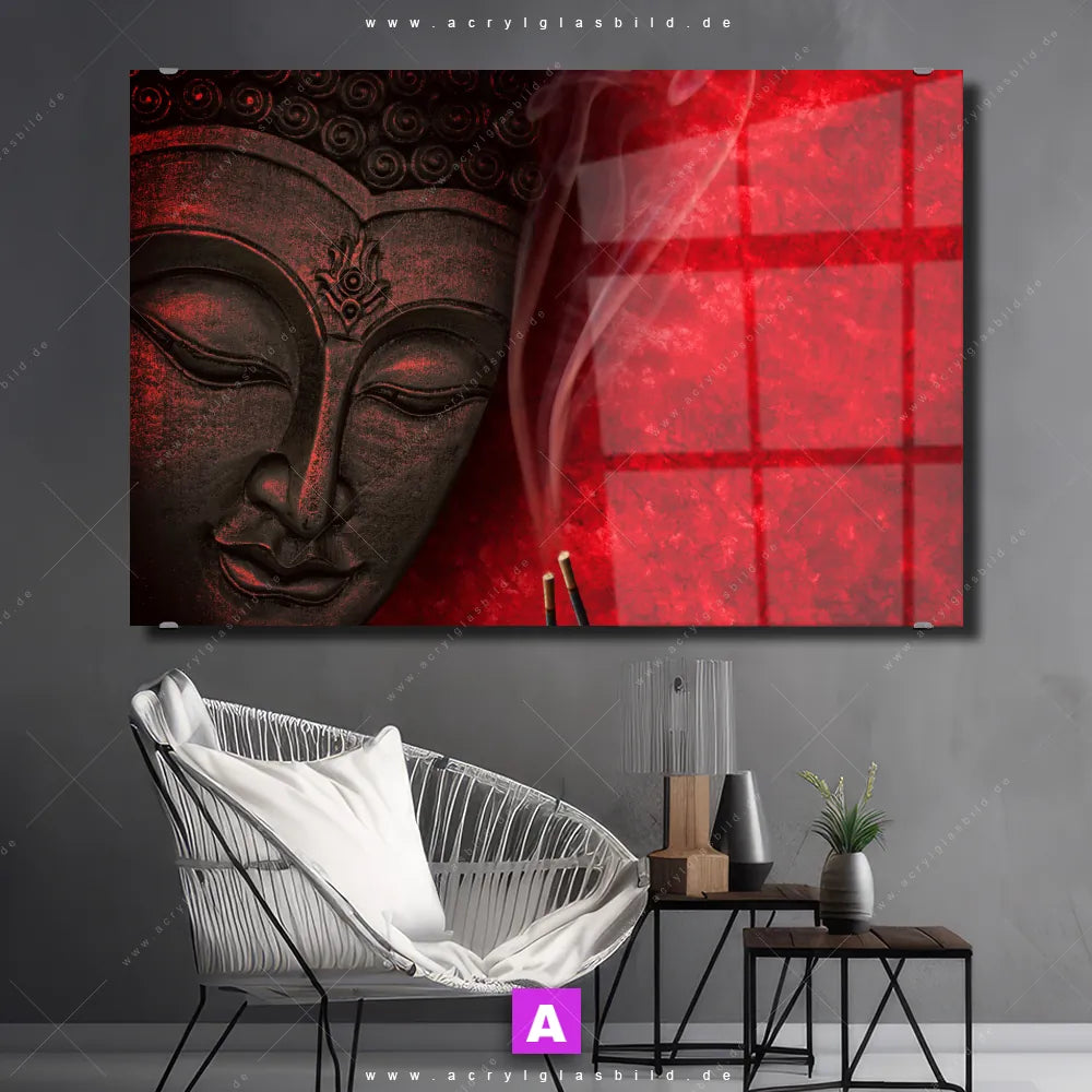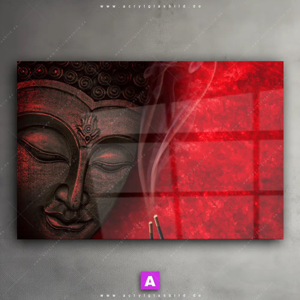 <b>Produktart:</b> Acrylglasbild | Glasbild | Wandbild aus Kunstglas | <b> Motiv:</b> Buddha & Weihrauch | <b> Bildausrichtung:</b> Querformat | <b> Max. Motiv-Größe:</b> 225cm breit | 150cm hoch | <b> Verfügbare Formate: </b> Quadrat, Querformat, Hochformat, Panorama, Schmal, Rund | <b> Kategorie:</b>  Buddha - Feng Shui | <b> Farben:</b>  Rot, Schwarz | <b> Kunstformen:</b>  Digitale Kunst | <b> Kunststile:</b>  Mixed Media, Modern Art