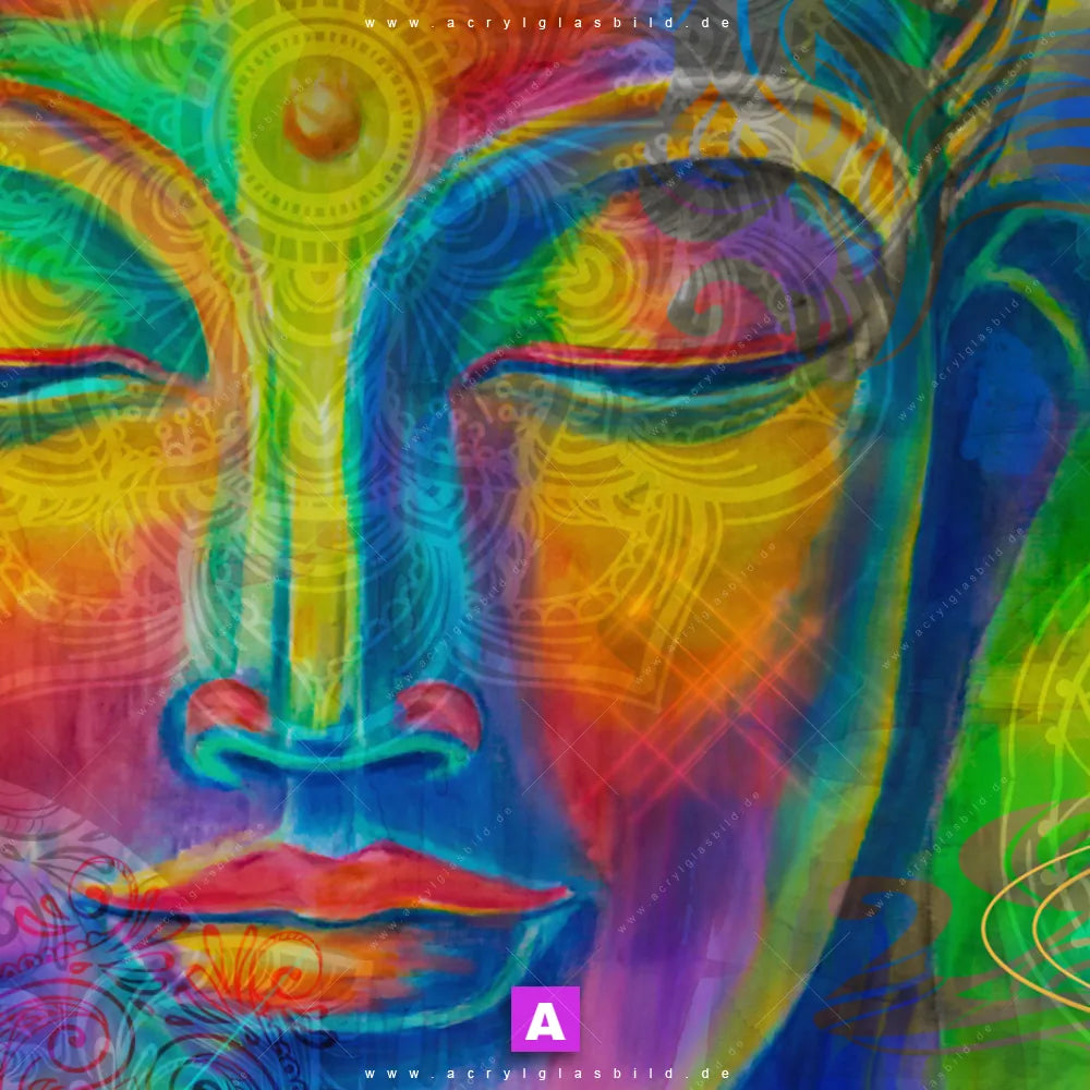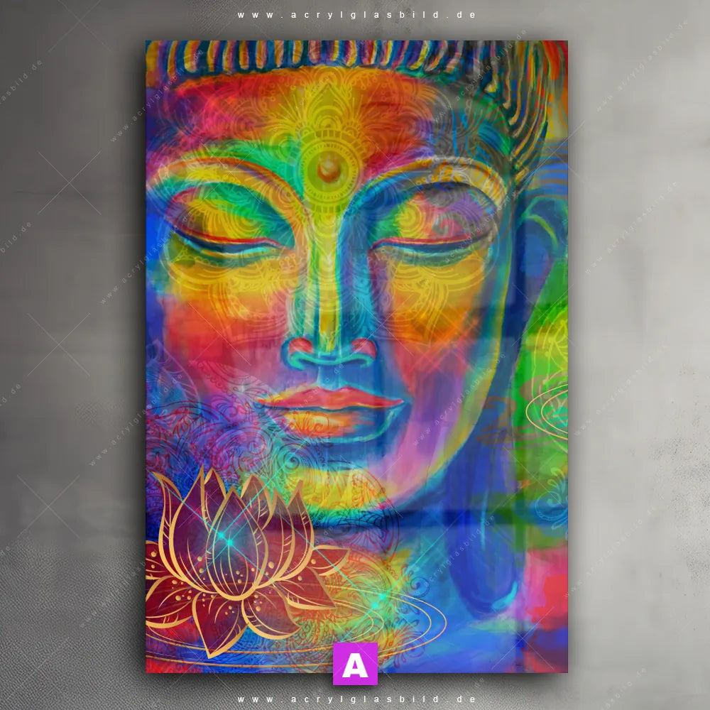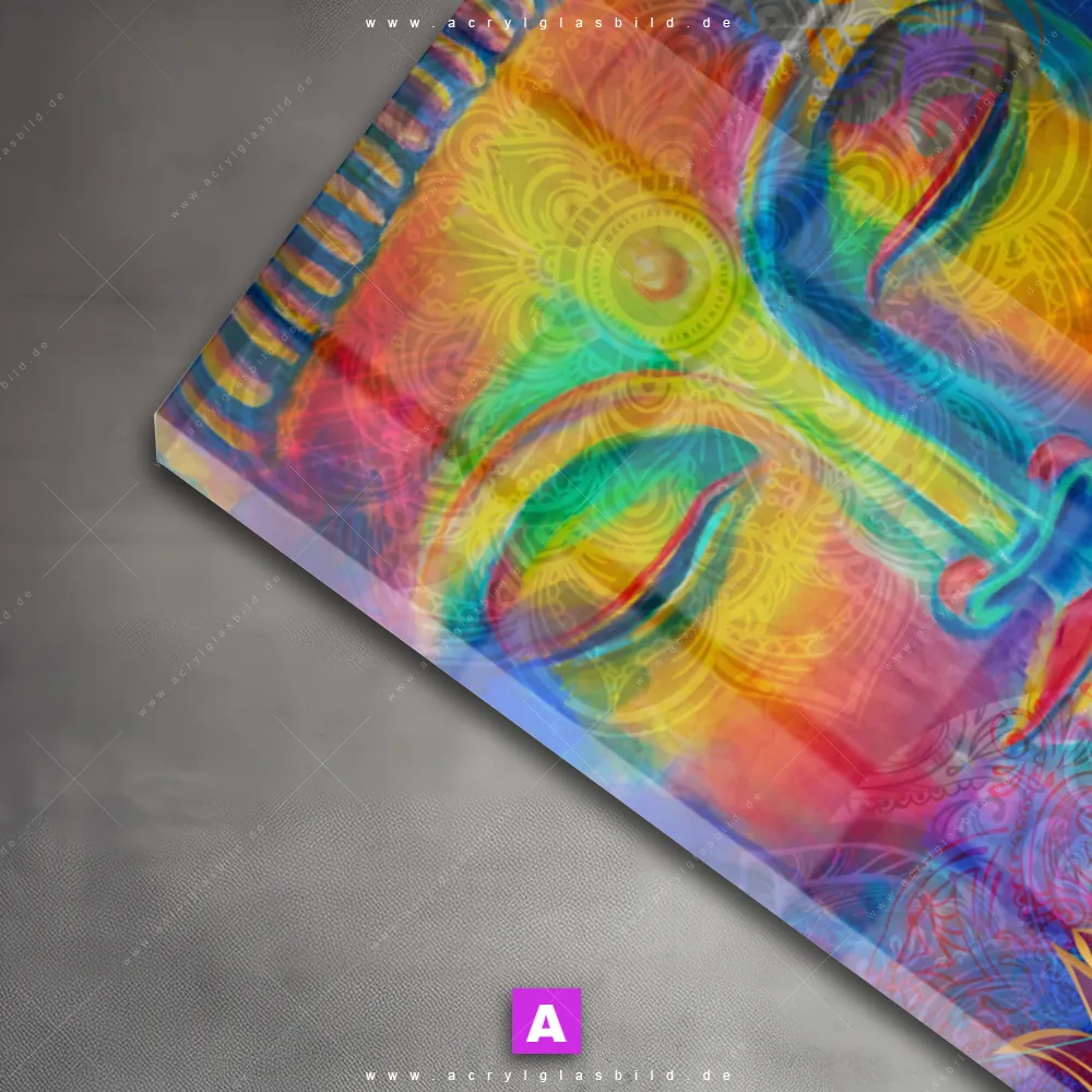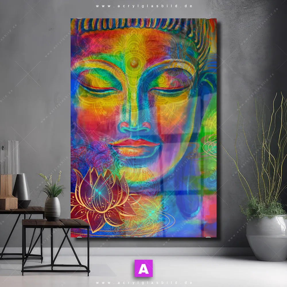 Hallo, auf Wiedersehen langweilige Wände! Gib deinem Raum ein stilvolles Upgrade mit unserem Acrylglasbild Bunter Buddha No.2 im Hochformat, das nicht nur Arzt - Praxis, Wohnzimmer - Schlafzimmer, Büro - Kanzlei, Flur - Eingangsbereich, sondern auch jeden anderen Raum im Handumdrehen auf ein neues Niveau hebt!