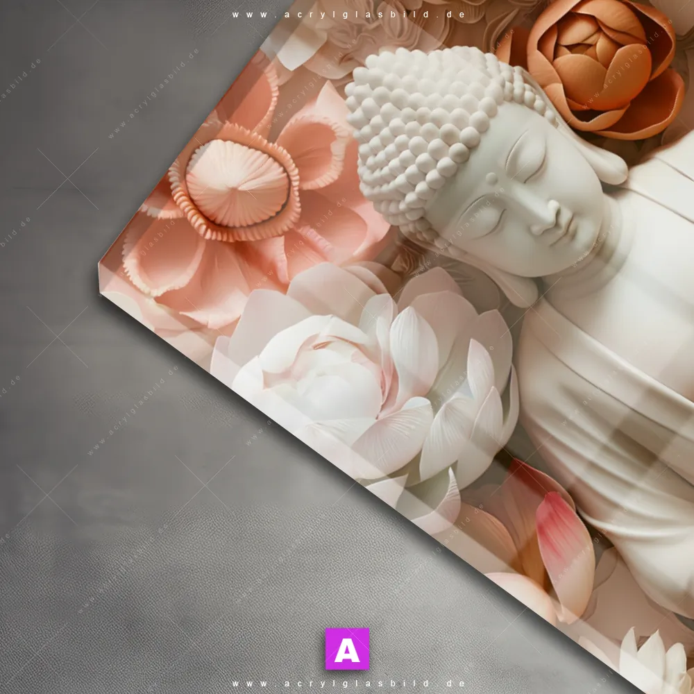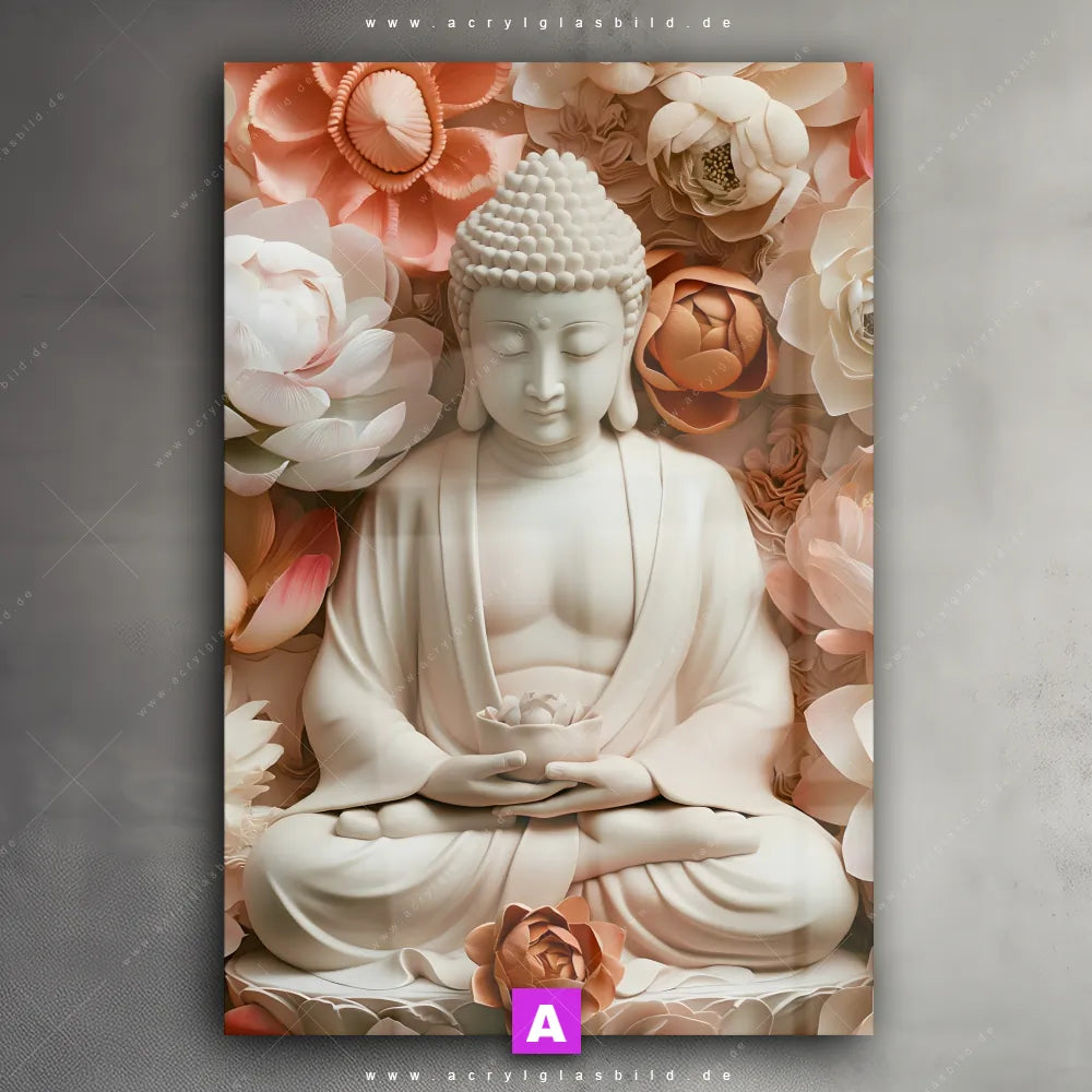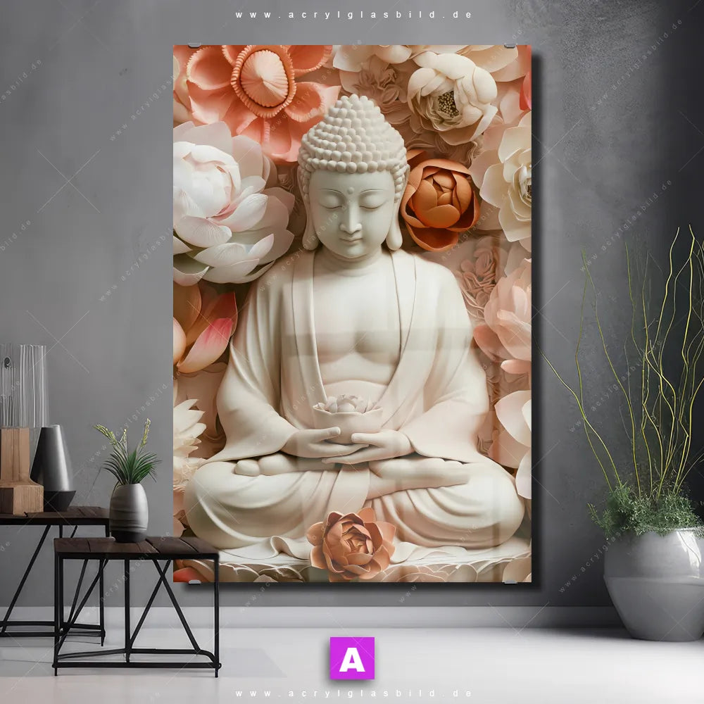 Hallo, auf Wiedersehen langweilige Wände! Gib deinem Raum ein stilvolles Upgrade mit unserem Acrylglasbild Meditierender Buddha mit Blüten im Hochformat, das nicht nur Arzt - Praxis, Wohnzimmer - Schlafzimmer, Flur - Eingangsbereich, sondern auch jeden anderen Raum im Handumdrehen auf ein neues Niveau hebt!