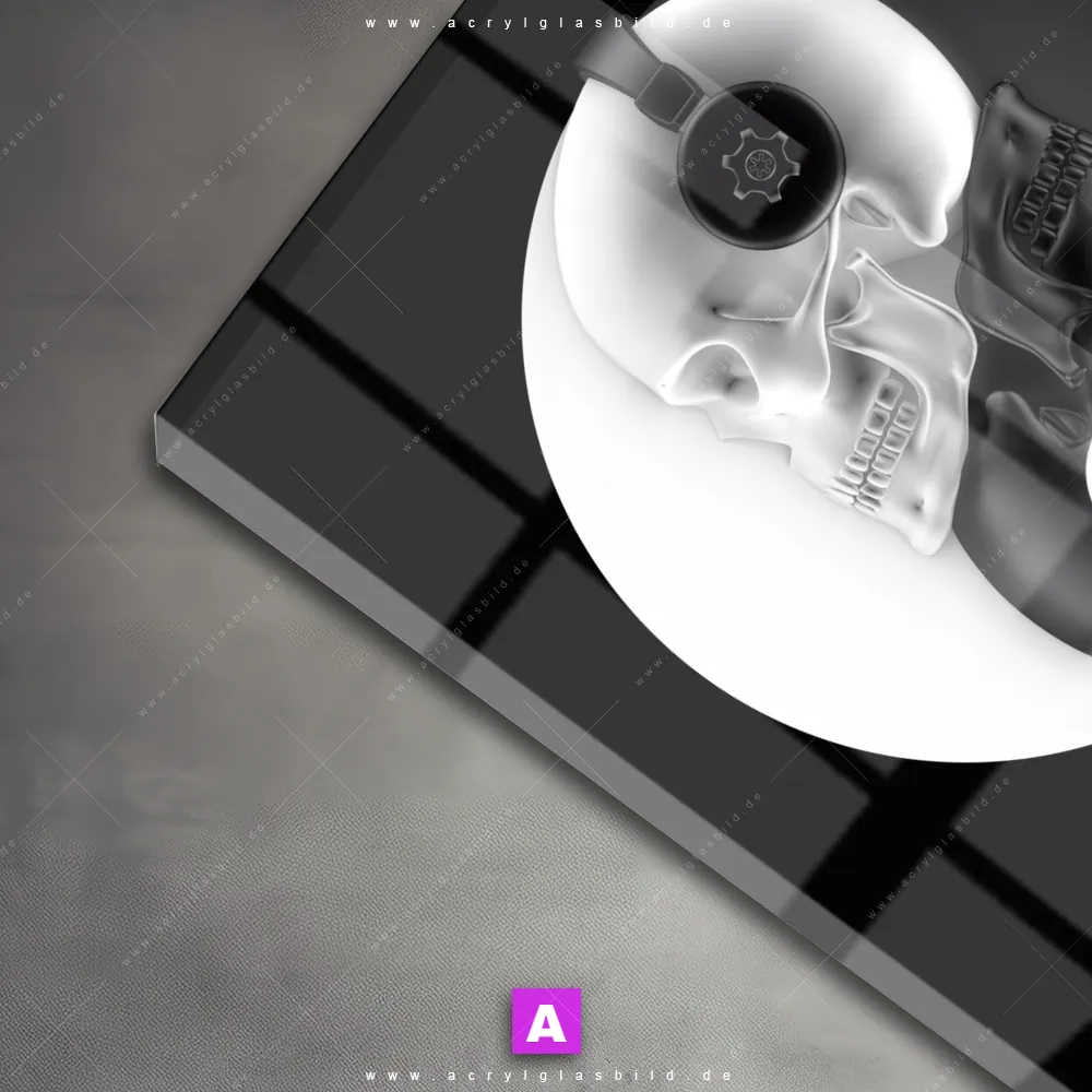 Du willst das Acrylglasbild schwarzer und weißer Totenkopf hören Musik in Wohnzimmer - Schlafzimmer, Flur - Eingangsbereich anbringen? Damit das ganz einfach geht, kannst du aus unserem Sortiment an Wandhalterungen in verschiedenen Ausführungen wählen.