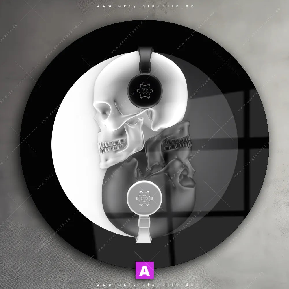 <b>Produktart:</b> Acrylglasbild | Glasbild | Wandbild aus Kunstglas | <b> Motiv:</b> Totenkopf Yin Yang | <b> Bildausrichtung:</b> Rund | <b> Max. Motiv-Größe:</b> 300cm breit | 300cm hoch | <b> Verfügbare Formate: </b> Quadrat, Querformat, Hochformat, Rund | <b> Kategorie:</b> Buddha - Feng Shui | <b> Farben:</b> Weiss, Schwarz, Grau | <b> Kunstformen:</b> Digitale Kunst | <b> Kunststile:</b> Mixed Media, Modern Art