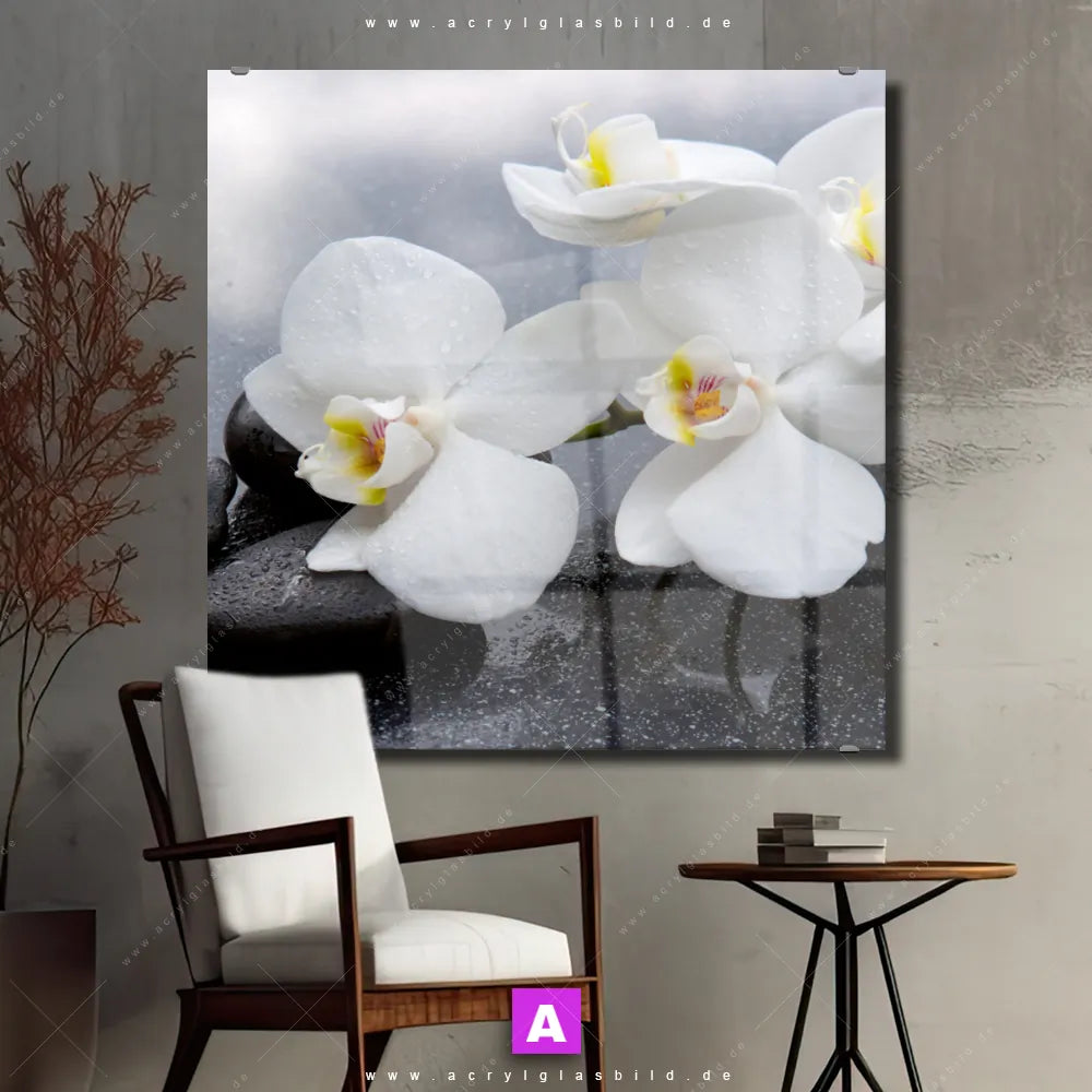 Also, worauf wartest du noch? Verleihe deinen Wänden das gewisse Etwas und bestelle jetzt das Acrylglasbild weiße Orchideenblüten!