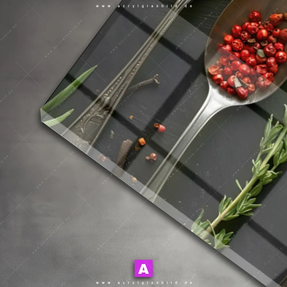 Also, worauf wartest du noch? Verwandle deine tristen Wände in Bar - Gastronomie, Küche - Esszimmer in inspirierende Kunstwerke aus der Kategorie Essen - Trinken und bestelle jetzt das Acrylglasbild Würzige Zutaten!