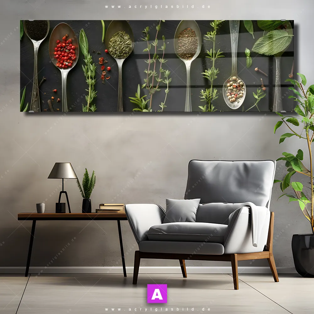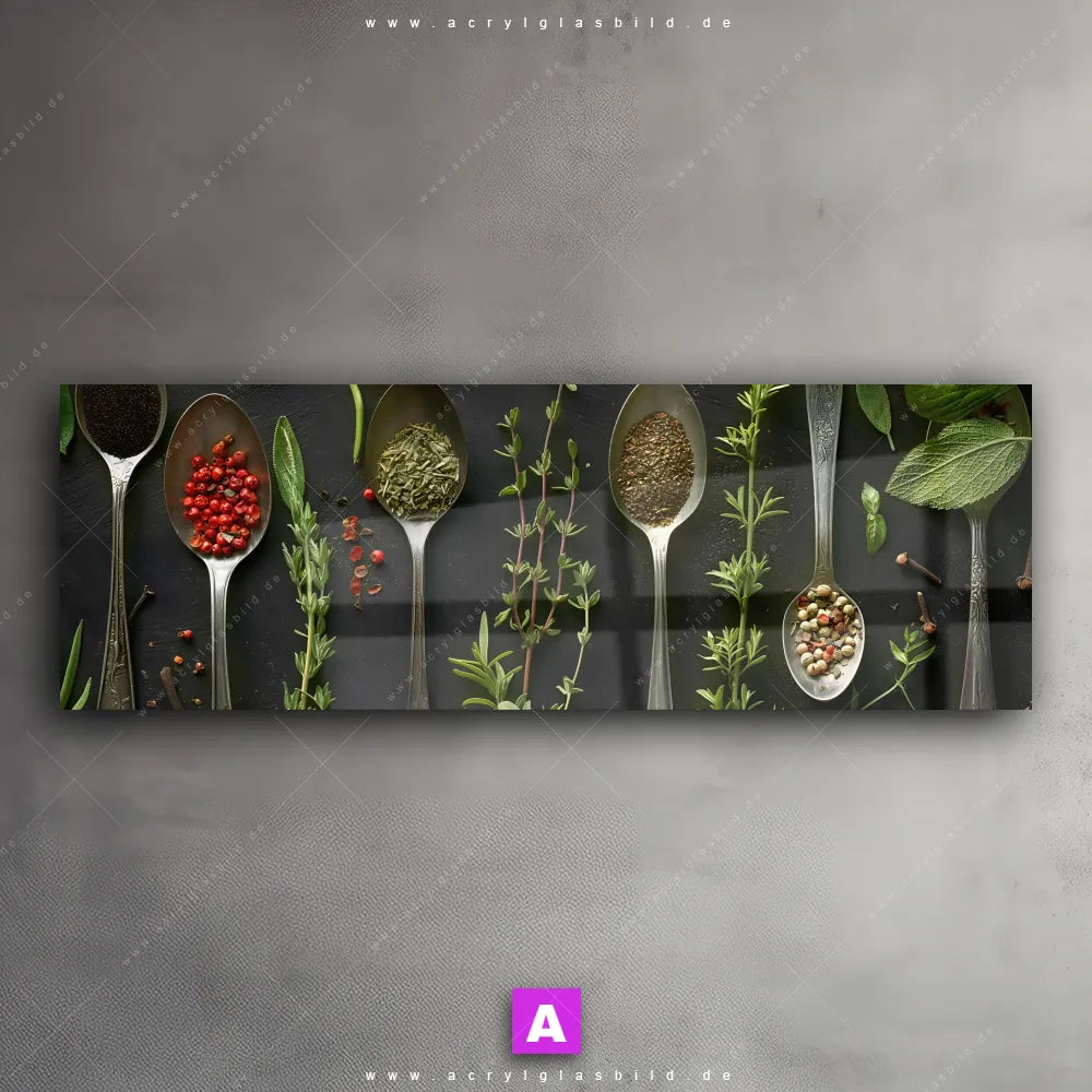 Fehlt dir die Inspiration beim Anblick deiner Wände, sodass selbst das Zählen der Wandfarbtropfen aufregender erscheint? Keine Sorge, wir haben das perfekte Kunstwerk für dich! Mit unserem Acrylglasbild Aromen der Natur im Panorama-Format verleihst du deinem Raum den dringend benötigten Wow-Faktor. Lass deine Wände mit unserem Löffel mit Gewürzen Acrylglasbild zum Star werden!