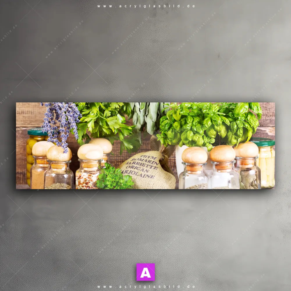 Fehlt dir die Inspiration beim Anblick deiner Wände, sodass selbst das Zählen der Wandfarbtropfen aufregender erscheint? Keine Sorge, wir haben das perfekte Kunstwerk für dich! Mit unserem Acrylglasbild Getrocknete Kräuter im Panorama-Format verleihst du deinem Raum den dringend benötigten Wow-Faktor. Lass deine Wände mit unserem Verschiedene frische Kräuter Acrylglasbild zum Star werden!