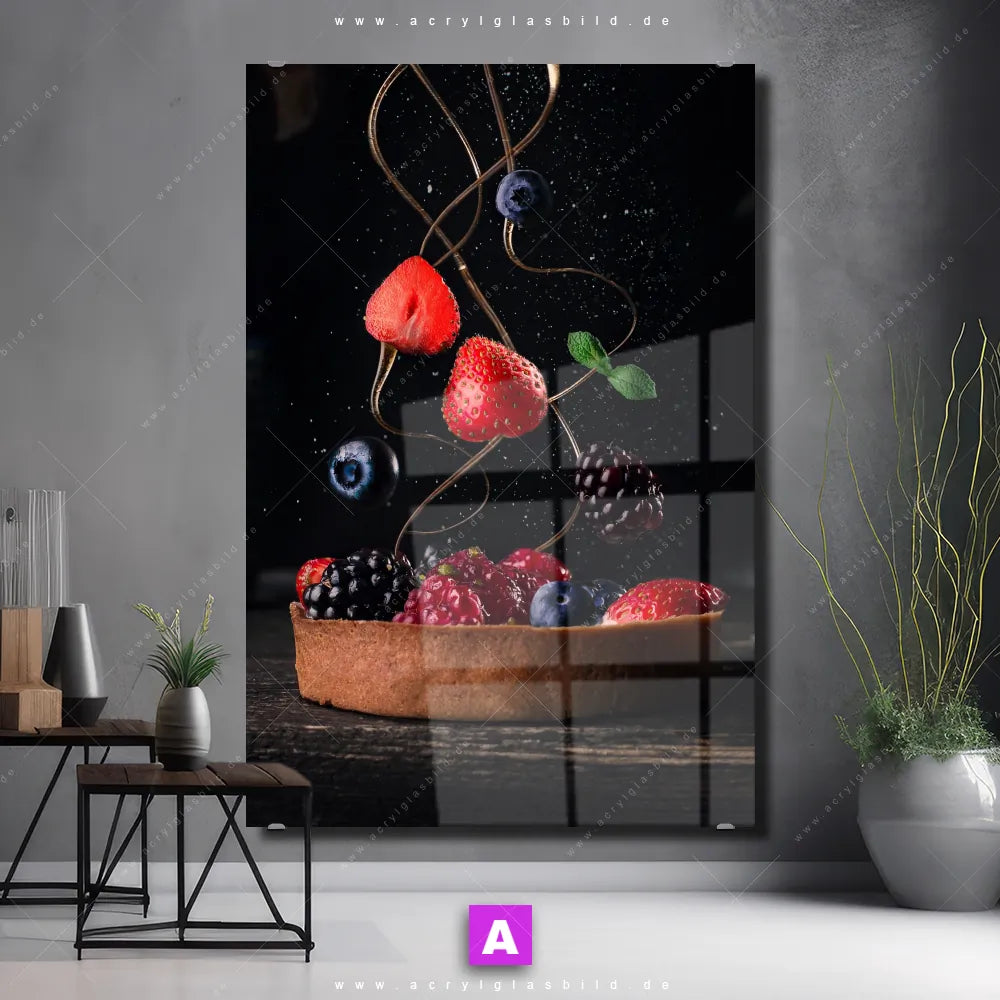 Hallo, auf Wiedersehen langweilige Wände! Gib deinem Raum ein stilvolles Upgrade mit unserem Acrylglasbild Kuchen mit frischen Beeren im Hochformat, das nicht nur Bar - Gastronomie, Küche - Esszimmer, sondern auch jeden anderen Raum im Handumdrehen auf ein neues Niveau hebt!