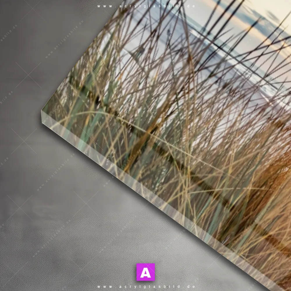 Das Motiv Dünen und Meer wird im UV-Direktdruck in den Farben Grün, Beige, Blau auf die Rückseite einer 5mm starken, transparenten Acrylglasplatte gedruckt. Das durchscheinende Motiv Sonnenstrahlen zwischen Dünengräsern im Natürlich - Realistisch, Retro - Vintage Stil wird anschließend vollflächig mit einer weißen Schicht hinterlegt. Das Landschaften, Strand - Meer Acrylglasbild | Panorama erhält so eine bemerkenswerte Farbbrillanz, hohe Schärfe und erstaunliche Tiefenwirkung.