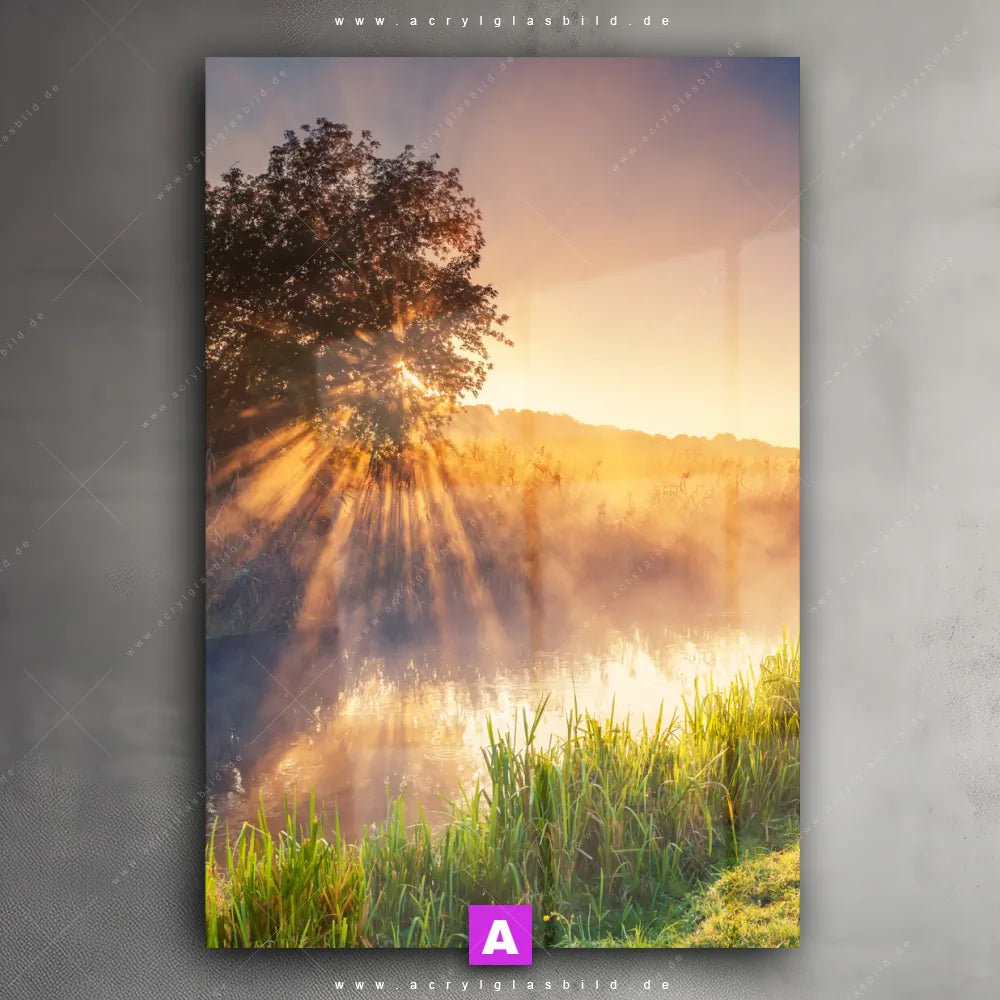 Begriffe wie Sonnenuntergang, Sonnenaufgang, Wasser, Horizont, Landschaft, Urlaub, Reisen, Fluss, Nebel, Morgenstimmung haben Dich auf der Suche nach Deinem neuen Wandbild aus Acrylglas inspiriert? Dann sollte das Acrylglasbild Sonnenstrahlen am Fluss den Weg zu Dir finden.