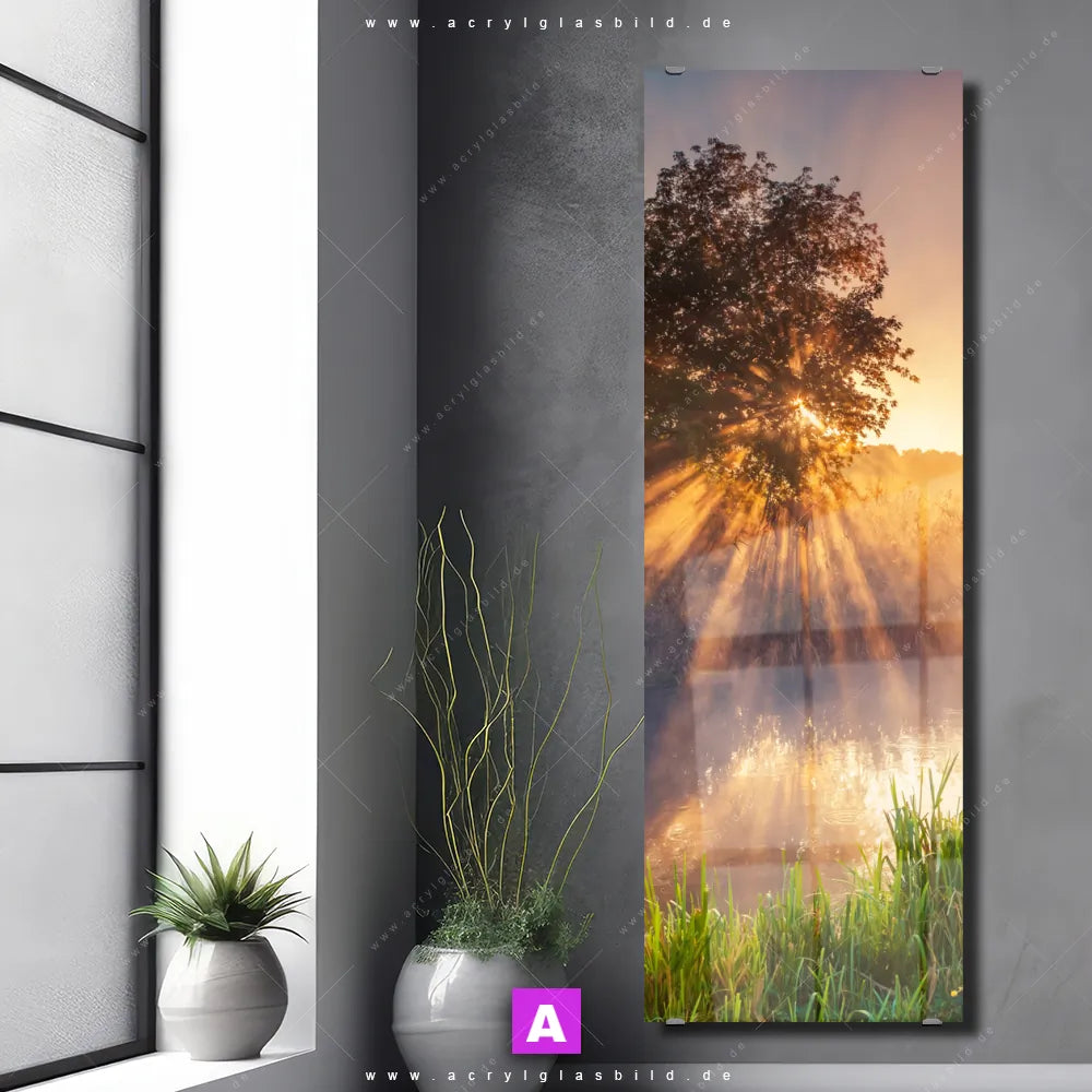 Vergiss also langweilige weiße Wände und entscheide dich für das Acrylglasbild Sonnenstrahlen im Nebel, gestaltet als Fotografie, das deinem Raum Charakter verleiht und dich jeden Tag aufs Neue inspiriert. Mit diesem Landschaften Acrylglasbild wird deine Wand zur Kunst und du zum Kunstliebhaber.