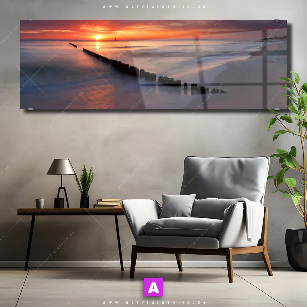 Fehlt dir die Inspiration beim Anblick deiner Wände, sodass selbst das Zählen der Wandfarbtropfen aufregender erscheint? Keine Sorge, wir haben das perfekte Kunstwerk für dich! Mit unserem Acrylglasbild Ostsee Sonnenuntergang im Panorama-Format verleihst du deinem Raum den dringend benötigten Wow-Faktor. Lass deine Wände mit unserem Sonnenuntergang am Strand Acrylglasbild zum Star werden!