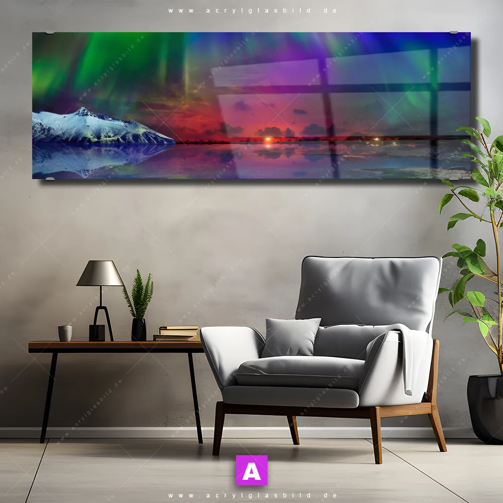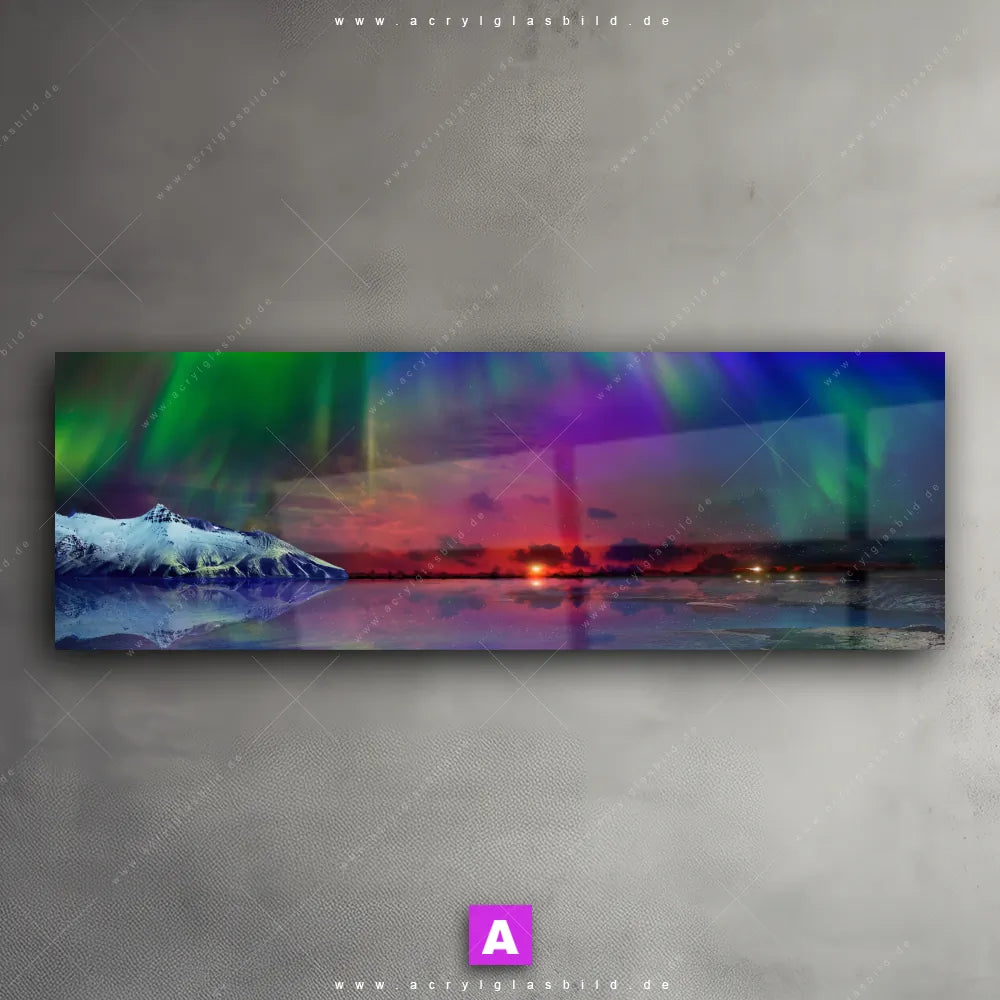 <b>Produktart:</b> Acrylglasbild | Glasbild | Wandbild aus Kunstglas | <b> Motiv:</b> Polarlichter | <b> Bildausrichtung:</b> Panorama | <b> Max. Motiv-Größe:</b> 210cm breit | 120cm hoch | <b> Verfügbare Formate: </b> Quadrat, Querformat, Hochformat, Panorama, Schmal, Rund | <b> Kategorie:</b>  Landschaften | <b> Farben:</b>  Rot, Grün, Blau | <b> Kunstformen:</b>  Fotografie | <b> Kunststile:</b>  Natürlich - Realistisch