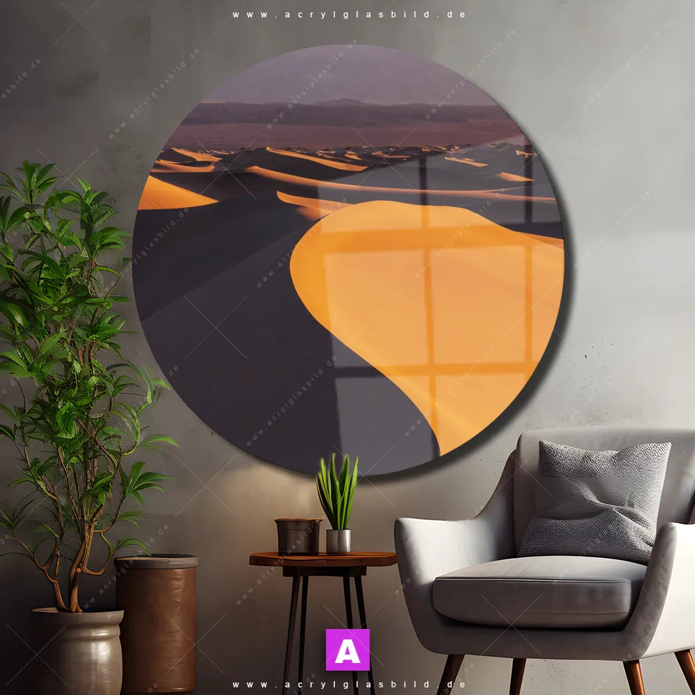 Hey du! Bist du es auch leid, auf langweilige, weiße Wände in deinem Raum zu starren und dich zu fragen, ob das der Sinn des Lebens ist? Unser Acrylglasbild mit dem Titel Sanddünen im Format Rund verwandelt deine Wand in ein Kunstwerk und macht deinen Raum zum absoluten Hingucker.
