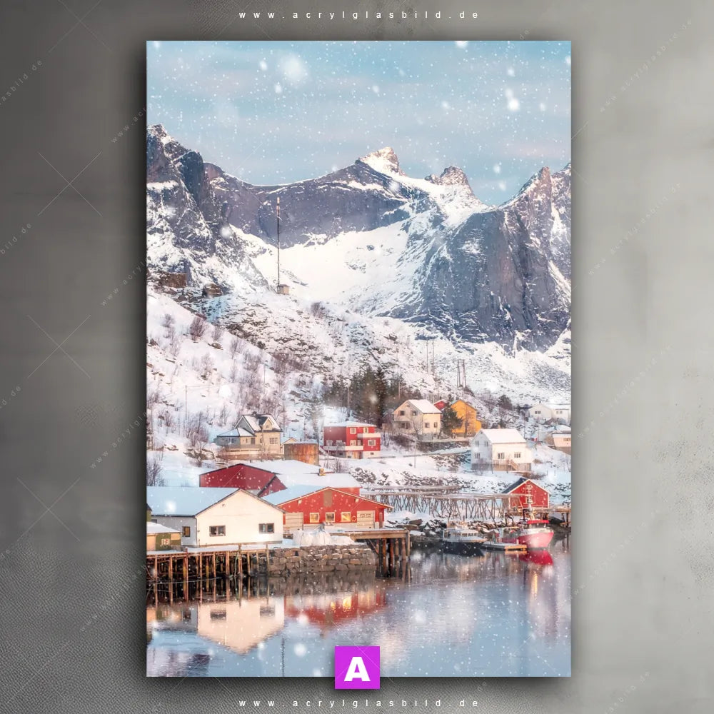 <b>Produktart:</b> Acrylglasbild | Glasbild | Wandbild aus Kunstglas | <b> Motiv:</b> Skandinavisches Dorf im Schnee | <b> Bildausrichtung:</b> Hochformat | <b> Max. Motiv-Größe:</b> 270cm breit | 180cm hoch | <b> Verfügbare Formate: </b> Quadrat, Querformat, Hochformat, Panorama, Schmal, Rund | <b> Kategorie:</b> Landschaften, Städte - Skylines | <b> Farben:</b> Blau, Rot, Weiss, Hellblau | <b> Kunstformen:</b> Fotografie | <b> Kunststile:</b> Natürlich - Realistisch