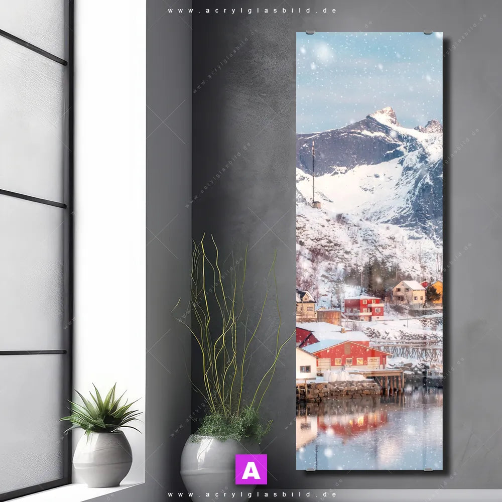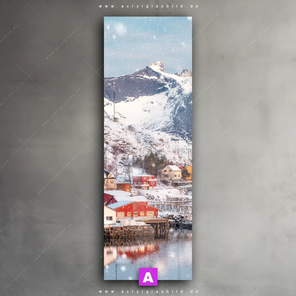 <b>Produktart:</b> Acrylglasbild | Glasbild | Wandbild aus Kunstglas | <b> Motiv:</b> Skandinavisches Dorf im Schnee | <b> Bildausrichtung:</b> Schmal | <b> Max. Motiv-Größe:</b> 270cm breit | 180cm hoch | <b> Verfügbare Formate: </b> Quadrat, Querformat, Hochformat, Panorama, Schmal, Rund | <b> Kategorie:</b> Landschaften, Städte - Skylines | <b> Farben:</b> Blau, Rot, Weiss, Hellblau | <b> Kunstformen:</b> Fotografie | <b> Kunststile:</b> Natürlich - Realistisch
