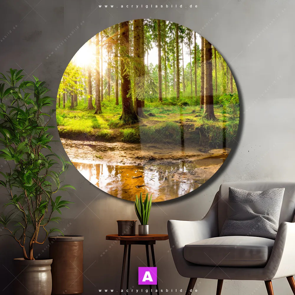 Hey du! Bist du es auch leid, auf langweilige, weiße Wände in deinem Raum zu starren und dich zu fragen, ob das der Sinn des Lebens ist? Unser Acrylglasbild mit dem Titel Sonne im grünen Wald im Format Rund verwandelt deine Wand in ein Kunstwerk und macht deinen Raum zum absoluten Hingucker.