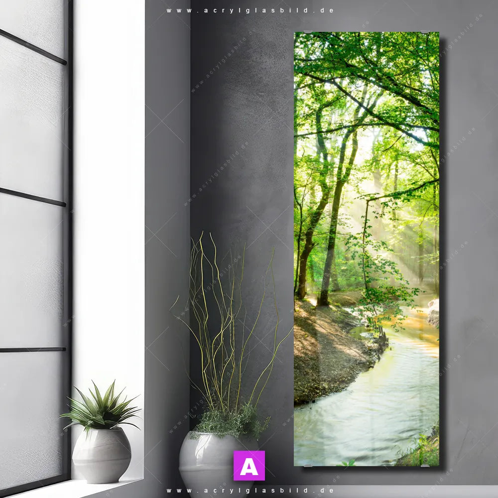 Langweilige Wände sind wie ein trockenes Toastbrot ohne Butter und Marmelade - einfach fade und nicht sehr appetitlich. Aber zum Glück haben wir das perfekte Acrylglasbild für dich: Mit unserem Kunstwerk Wald mit Bach im Format Schmal wird deine Wand zur Leinwand und dein Raum zum Blickfang.