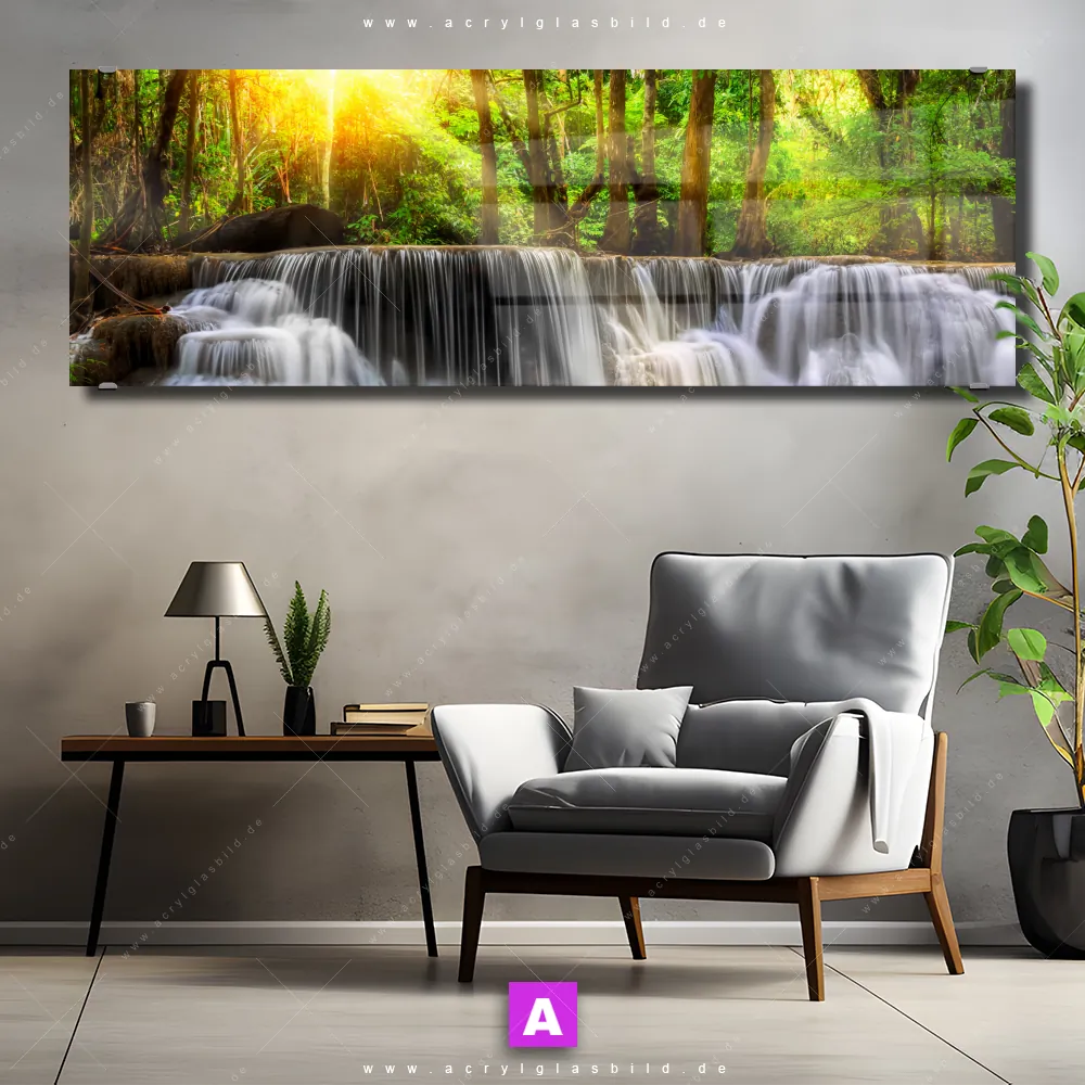 Fehlt dir die Inspiration beim Anblick deiner Wände, sodass selbst das Zählen der Wandfarbtropfen aufregender erscheint? Keine Sorge, wir haben das perfekte Kunstwerk für dich! Mit unserem Acrylglasbild Wald & Wasserfall No. 2 im Panorama-Format verleihst du deinem Raum den dringend benötigten Wow-Faktor. Lass deine Wände mit unserem Wasserfälle im Urwald Acrylglasbild zum Star werden!
