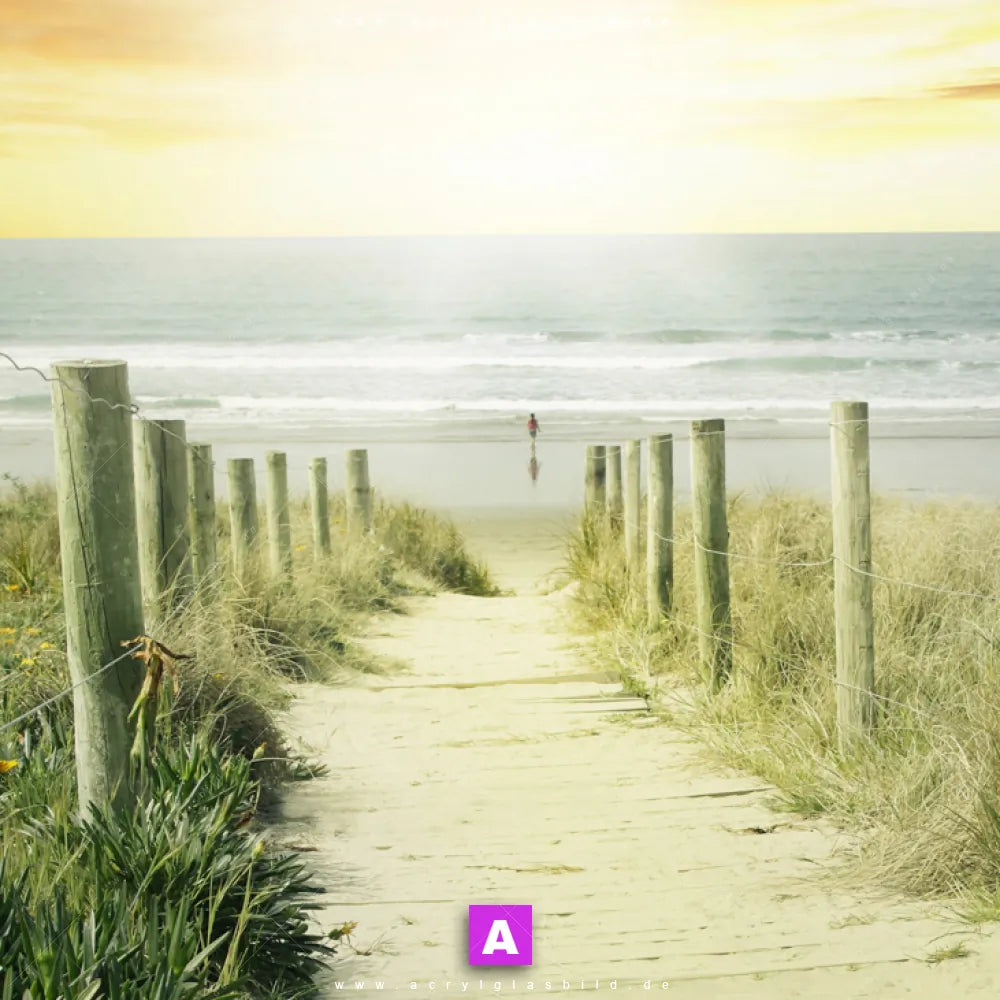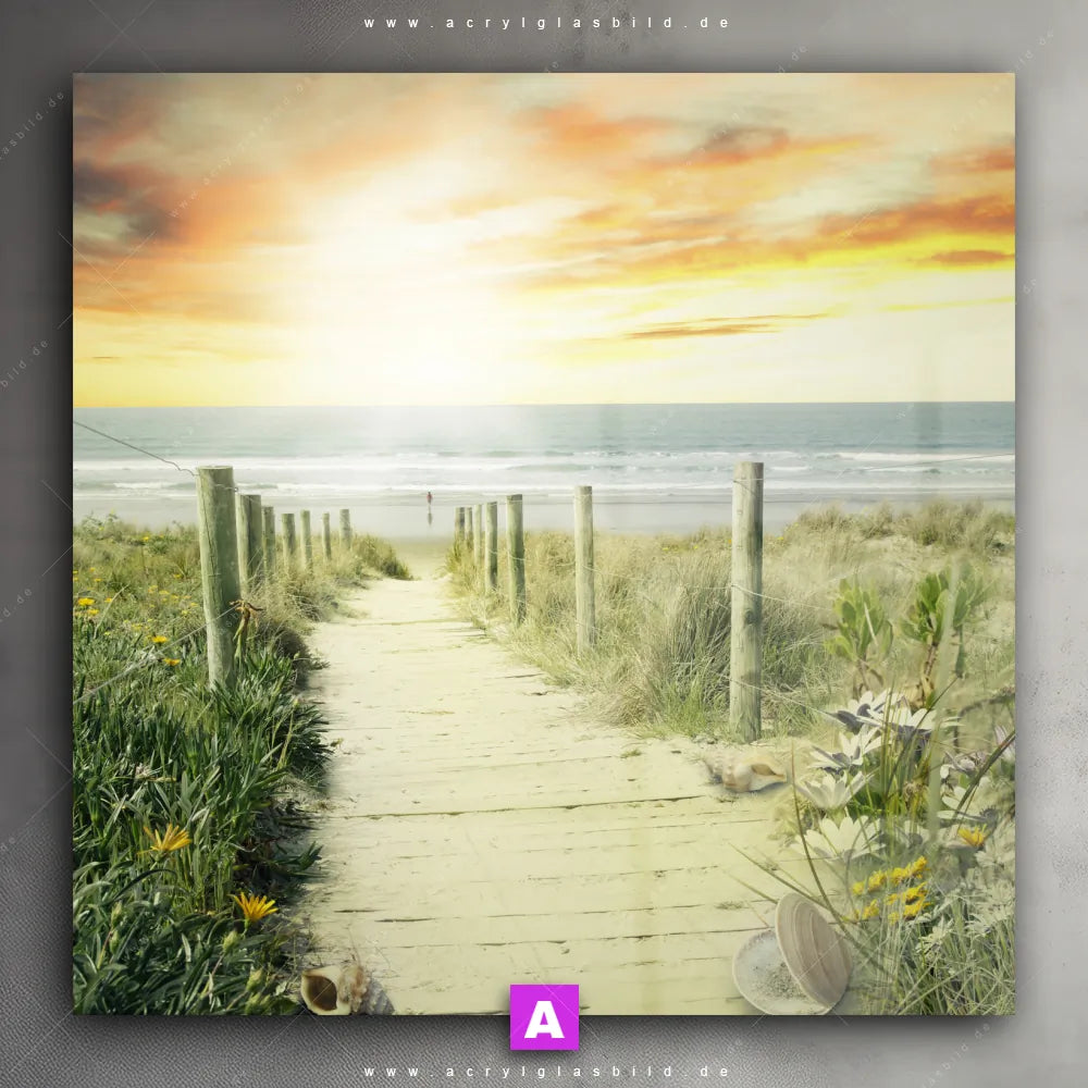 Bist du es leid, ständig auf deine tristen Wände zu starren und dir vorzustellen, wie viel lebendiger sie sein könnten? Wir haben die ideale Lösung für dich: Unser Acrylglasbild Weg zum Strand im Quadrat-Format haucht deinen Räumen sofort neues Leben ein!