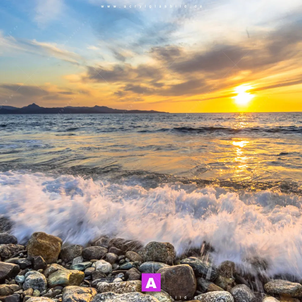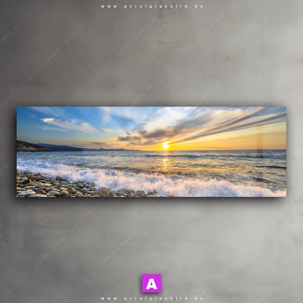 Fehlt dir die Inspiration beim Anblick deiner Wände, sodass selbst das Zählen der Wandfarbtropfen aufregender erscheint? Keine Sorge, wir haben das perfekte Kunstwerk für dich! Mit unserem Acrylglasbild Wellen des Meeres im Panorama-Format verleihst du deinem Raum den dringend benötigten Wow-Faktor. Lass deine Wände mit unserem Kiesstrand im Sonnenuntergang Acrylglasbild zum Star werden!