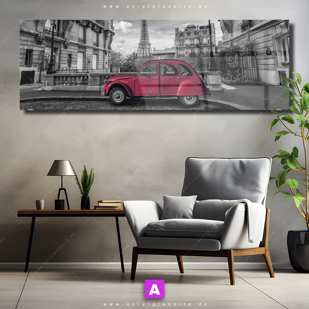 Fehlt dir die Inspiration beim Anblick deiner Wände, sodass selbst das Zählen der Wandfarbtropfen aufregender erscheint? Keine Sorge, wir haben das perfekte Kunstwerk für dich! Mit unserem Acrylglasbild Ente in Paris im Panorama-Format verleihst du deinem Raum den dringend benötigten Wow-Faktor. Lass deine Wände mit unserem Oldtimer in Paris Acrylglasbild zum Star werden!