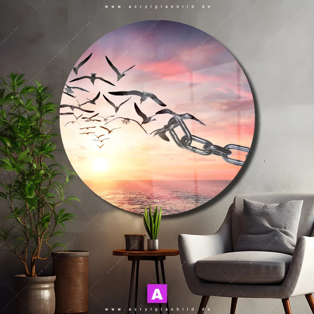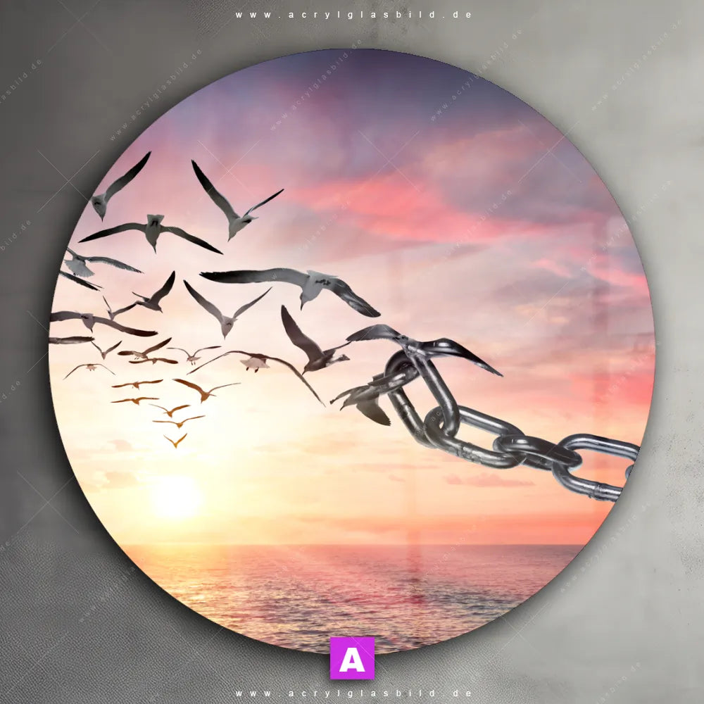 Hey du! Bist du es auch leid, auf langweilige, weiße Wände in deinem Raum zu starren und dich zu fragen, ob das der Sinn des Lebens ist? Unser Acrylglasbild mit dem Titel Flügel der Freiheit im Format Rund verwandelt deine Wand in ein Kunstwerk und macht deinen Raum zum absoluten Hingucker.
