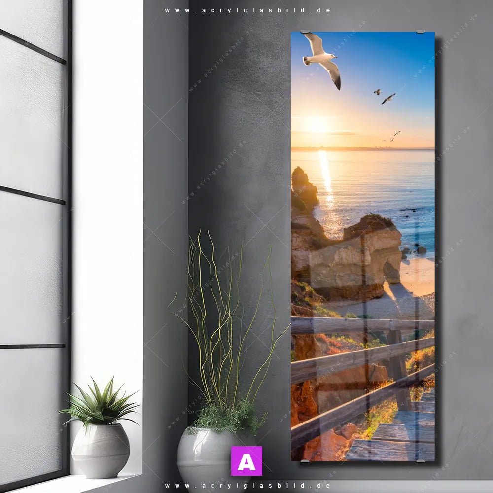 Langweilige Wände sind wie ein trockenes Toastbrot ohne Butter und Marmelade - einfach fade und nicht sehr appetitlich. Aber zum Glück haben wir das perfekte Acrylglasbild für dich: Mit unserem Kunstwerk Steg zum Meer im Format Schmal wird deine Wand zur Leinwand und dein Raum zum Blickfang.