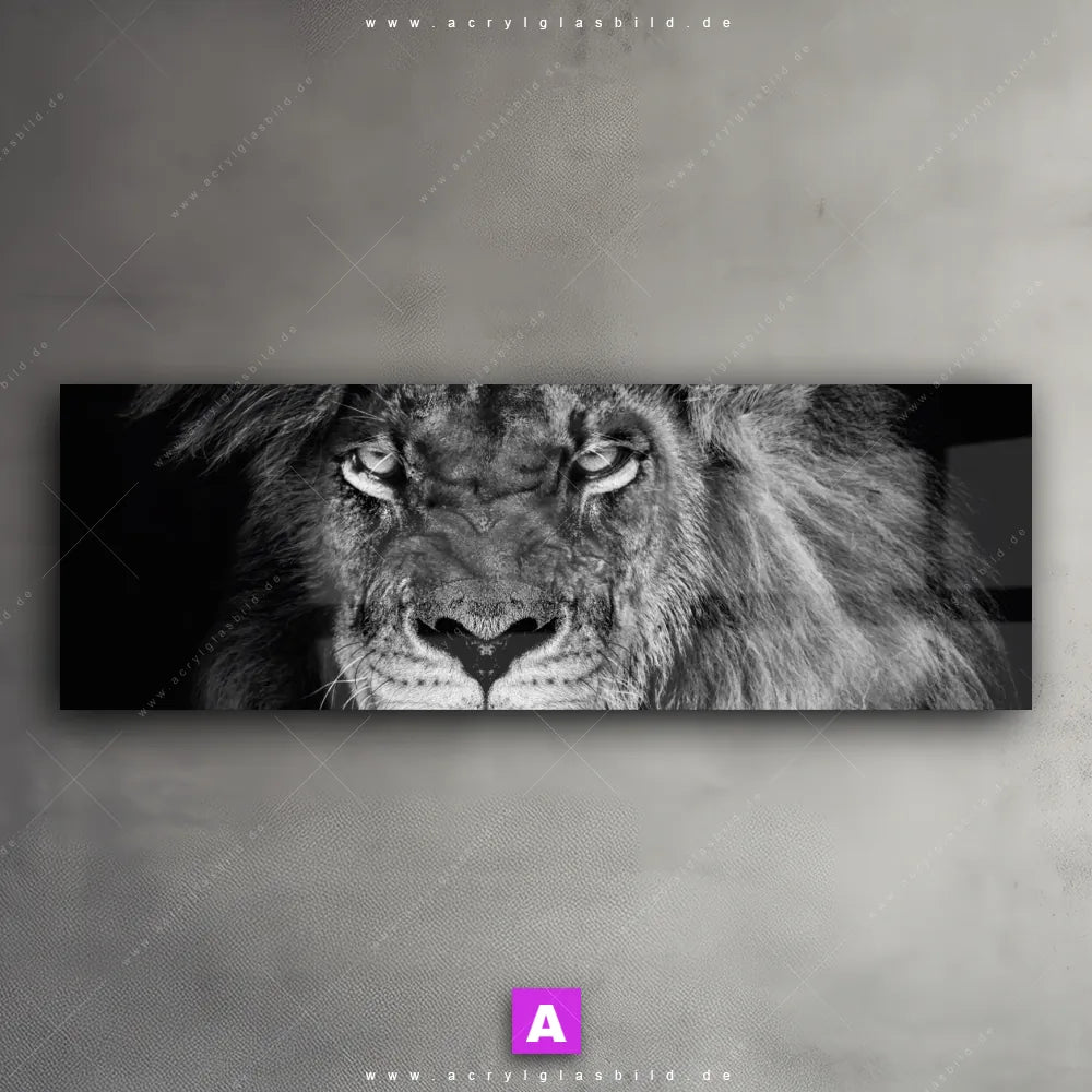 Acrylglasbild | Löwe Schwarzweiß | Panorama