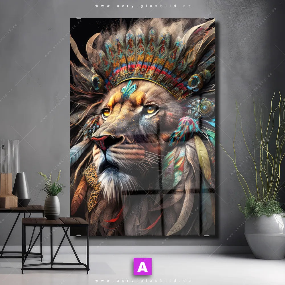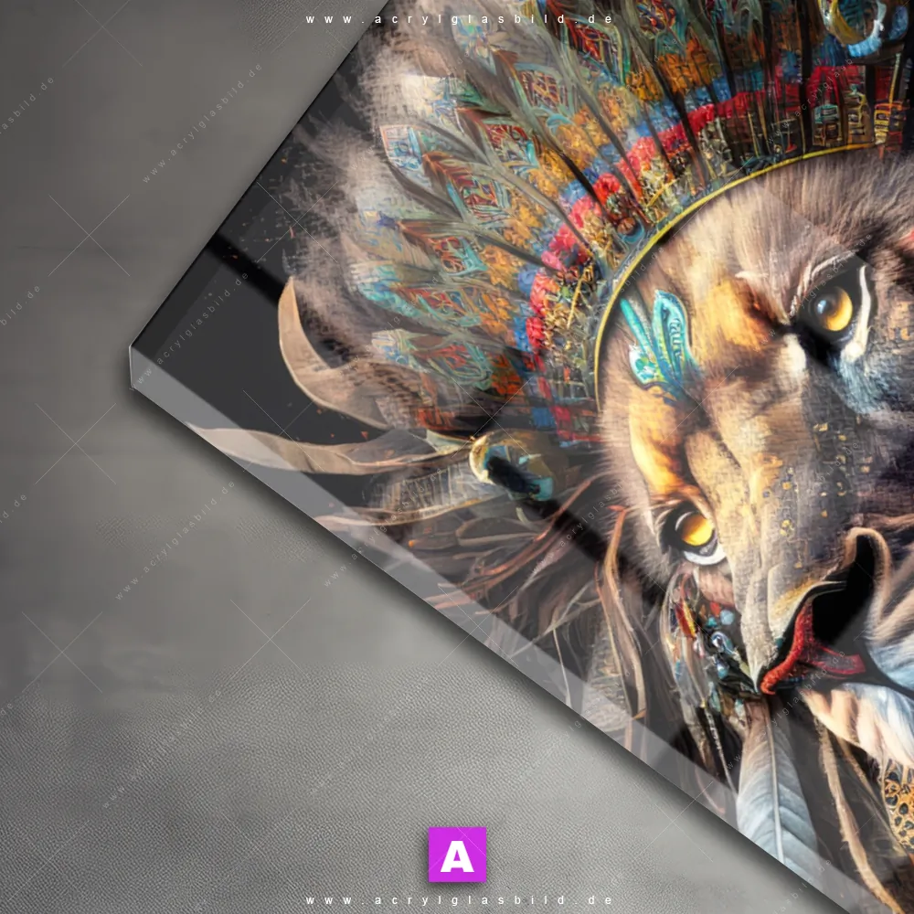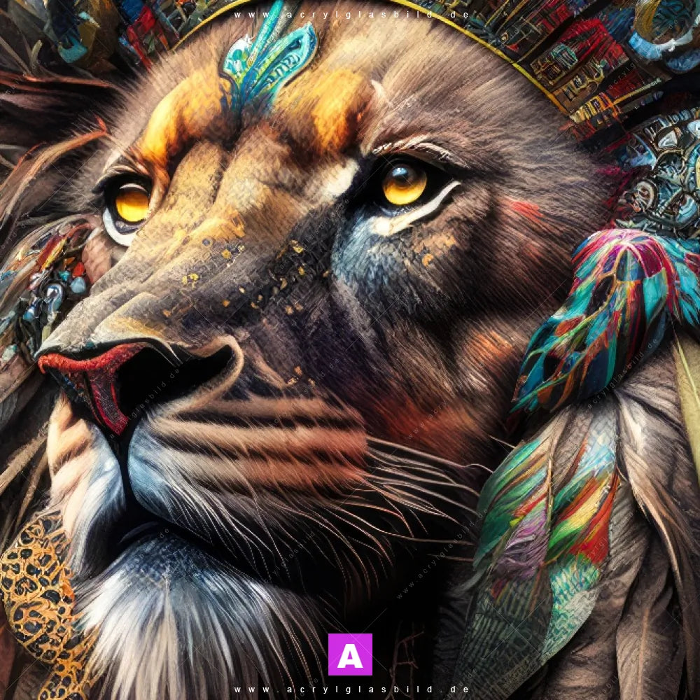 Also, worauf wartest du noch? Verwandle deine schlichten Wände in inspirierende Kunstwerke und bestelle jetzt das Acrylglasbild Löwenkopf mit Federschmuck!