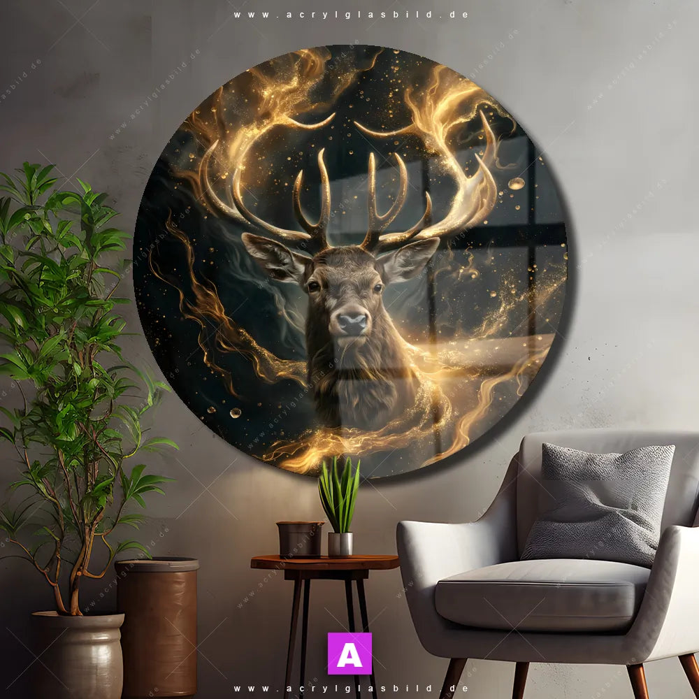 Hey du! Bist du es auch leid, auf langweilige, weiße Wände in deinem Raum zu starren und dich zu fragen, ob das der Sinn des Lebens ist? Unser Acrylglasbild mit dem Titel Magischer Hirsch im Sternenlicht im Format Rund verwandelt deine Wand in ein Kunstwerk und macht deinen Raum zum absoluten Hingucker.