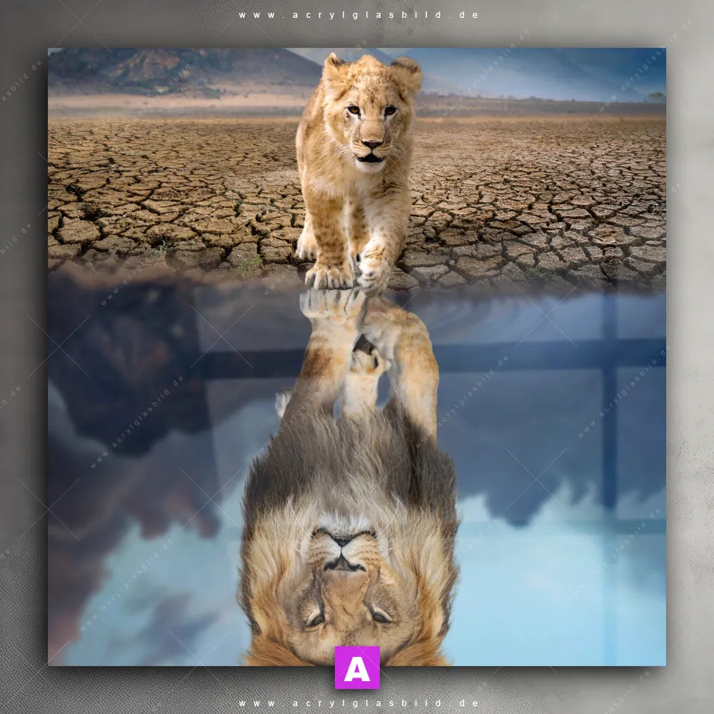Bist du es leid, ständig auf deine tristen Wände zu starren und dir vorzustellen, wie viel lebendiger sie sein könnten? Wir haben die ideale Lösung für dich: Unser Acrylglasbild Spiegelbild Löwe & Löwenjunges im Quadrat-Format haucht deinen Räumen sofort neues Leben ein!