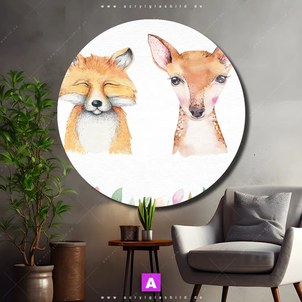 Hey du! Bist du es auch leid, auf langweilige, weiße Wände in deinem Raum zu starren und dich zu fragen, ob das der Sinn des Lebens ist? Unser Acrylglasbild mit dem Titel Tiere des Waldes im Format Rund verwandelt deine Wand in ein Kunstwerk und macht deinen Raum zum absoluten Hingucker.