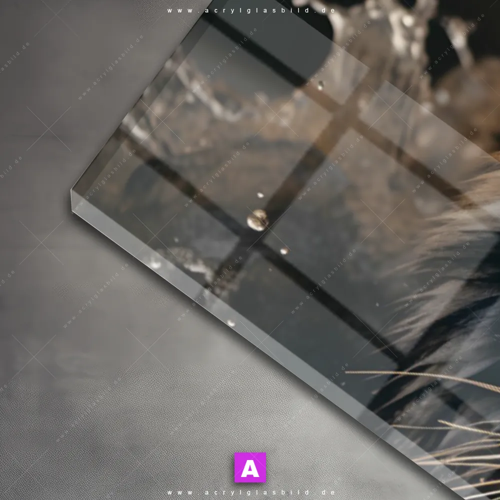Das Motiv Tiger im Wasser wird im UV-Direktdruck in den Farben Braun, Beige, Schwarz auf die Rückseite einer 5mm starken, transparenten Acrylglasplatte gedruckt. Das durchscheinende Motiv Tiger im kühlen Nass im Modern Art Stil wird anschließend vollflächig mit einer weißen Schicht hinterlegt. Das Tierwelt Acrylglasbild | Panorama erhält so eine bemerkenswerte Farbbrillanz, hohe Schärfe und erstaunliche Tiefenwirkung.