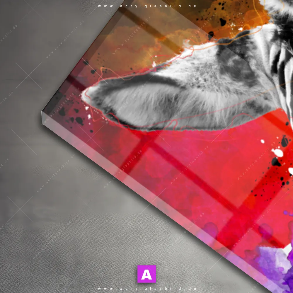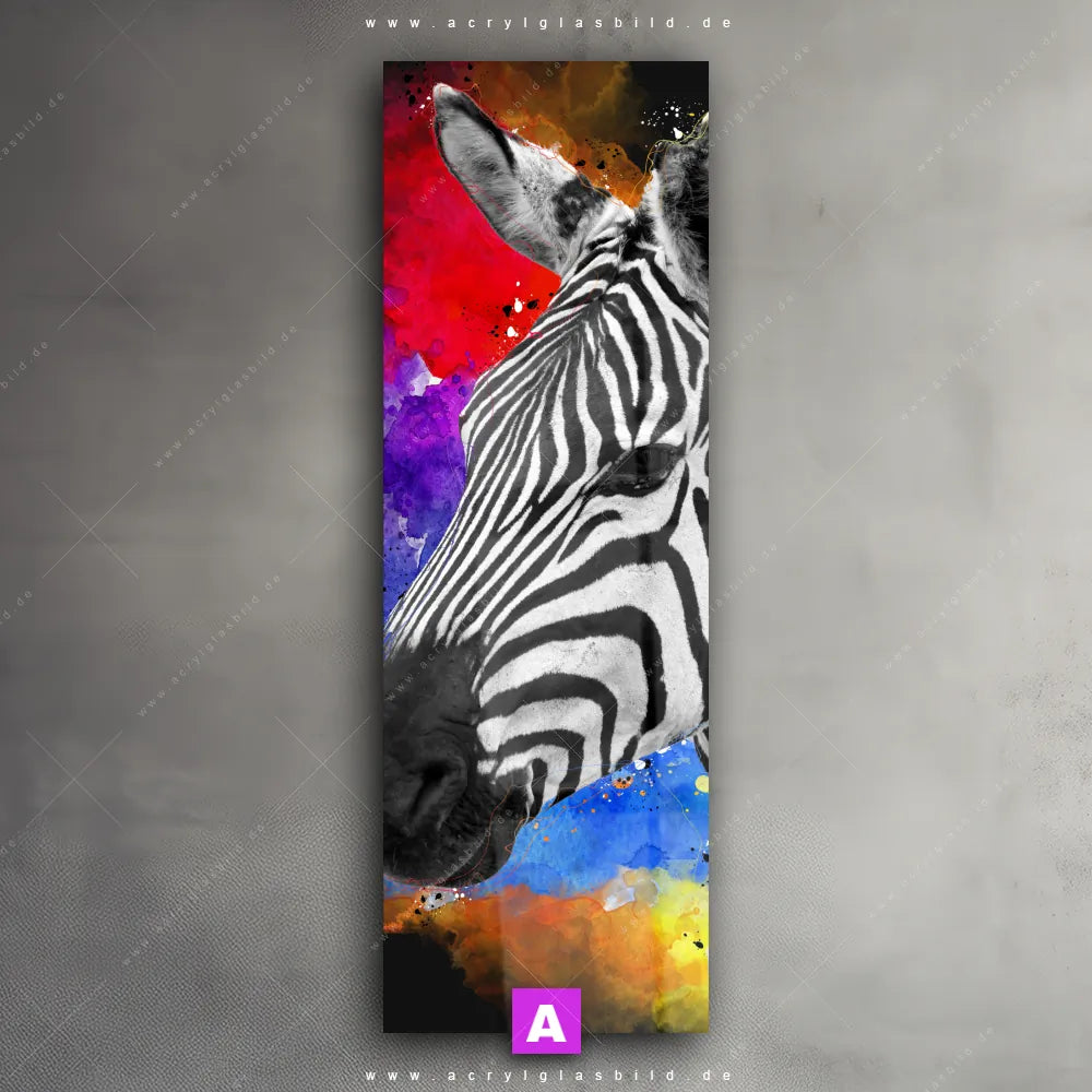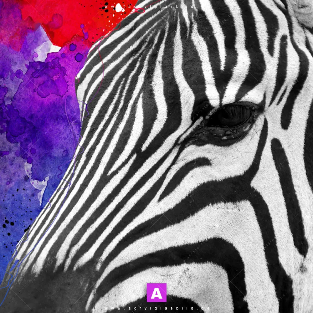 Vergiss also langweilige weiße Wände und entscheide dich für das Acrylglasbild Zebraporträt mit farbenfrohem Akzent, gestaltet als Digitale Kunst, das deinem Raum Charakter verleiht und dich jeden Tag aufs Neue inspiriert. Mit diesem Tierwelt Acrylglasbild wird deine Wand zur Kunst und du zum Kunstliebhaber.