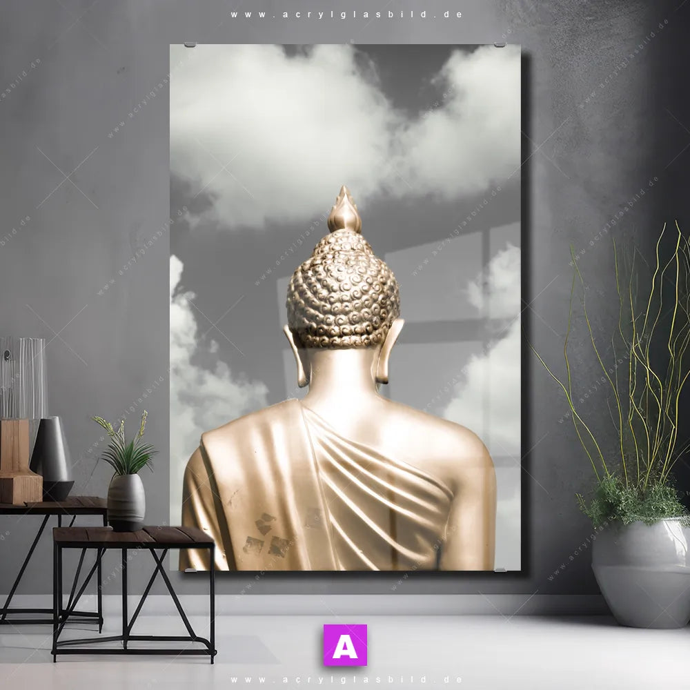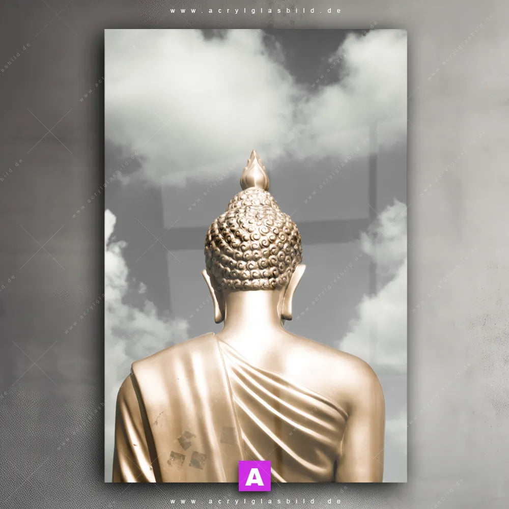 Wenn du auf der Suche nach einem Wandkunstwerk bist, das deine Sinne anregt und deine kreative Seite erweckt, dann ist unser Acrylglasbild Buddha Rückansicht in Gold aus der Kategorie Buddha - Feng Shui die perfekte Wahl für dich. Entscheide dich für das Acrylglasbild Buddha vor wolkigem Himmel in den faszinierenden Farben Weiss, Beige, Gold, da es ideal zu deinem Einrichtungsstil im Mixed Media, Modern Art-Look passt.