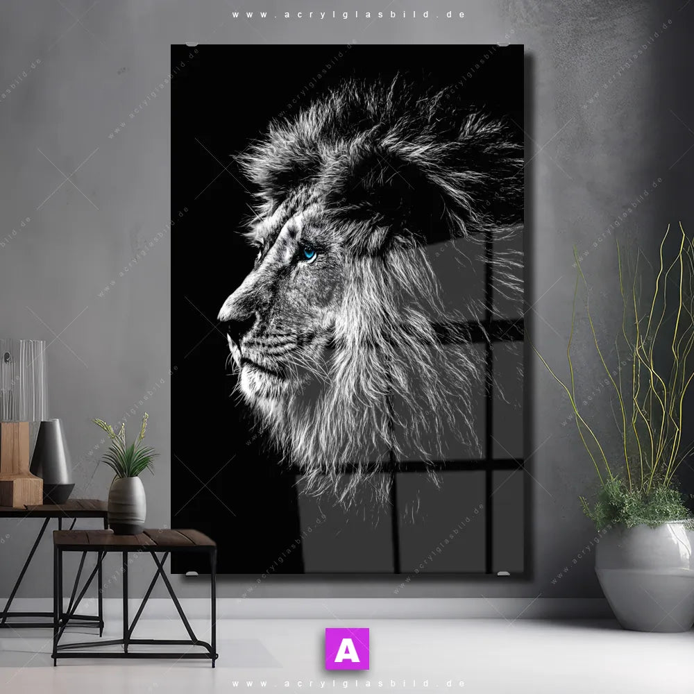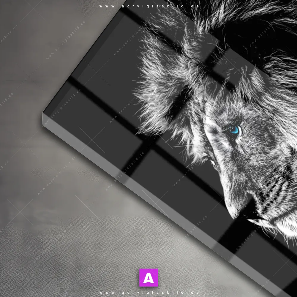 Hallo, auf Wiedersehen langweilige Wände! Gib deinem Raum ein stilvolles Upgrade mit unserem Acrylglasbild Löwe mit blauen Augen im Hochformat, das nicht nur Arzt - Praxis, Bar - Gastronomie, Büro - Kanzlei, Flur - Eingangsbereich, Wohnzimmer - Schlafzimmer, sondern auch jeden anderen Raum im Handumdrehen auf ein neues Niveau hebt!