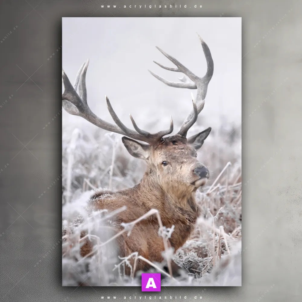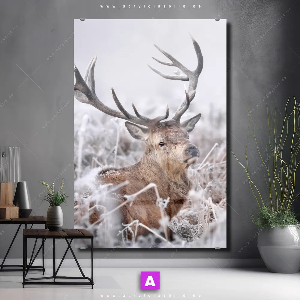 Hallo, auf Wiedersehen langweilige Wände! Gib deinem Raum ein stilvolles Upgrade mit unserem Acrylglasbild Rothirsch im Winter im Hochformat, das nicht nur Arzt - Praxis, Büro - Kanzlei, Wohnzimmer - Schlafzimmer, sondern auch jeden anderen Raum im Handumdrehen auf ein neues Niveau hebt!