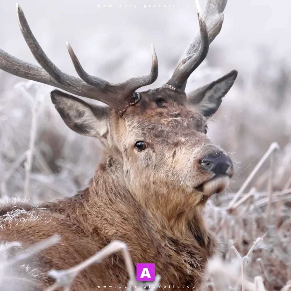 Also, worauf wartest du noch? Verwandle deine schlichten Wände in inspirierende Kunstwerke und bestelle jetzt das Acrylglasbild Hirschkopf im winterlichen Gras!