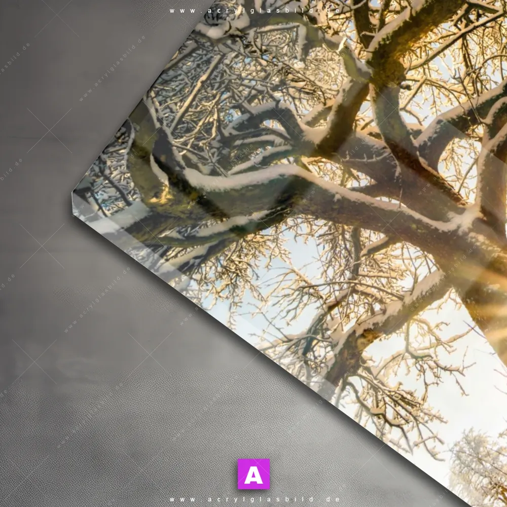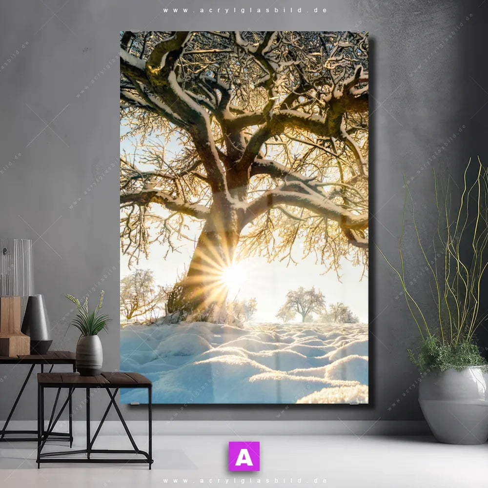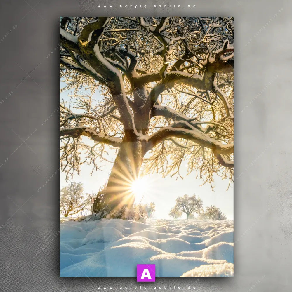 Wenn du auf der Suche nach einem Wandkunstwerk bist, das deine Sinne anregt und deine kreative Seite erweckt, dann ist unser Acrylglasbild Schneebedeckter alter Baum aus der Kategorie Landschaften, Winter, Wald - Bäume die perfekte Wahl für dich. Entscheide dich für das Acrylglasbild Warme Sonnenstahlen an kaltem Wintertag in den faszinierenden Farben Weiss, Braun, Blau, da es ideal zu deinem Einrichtungsstil im Natürlich - Realistisch-Look passt.